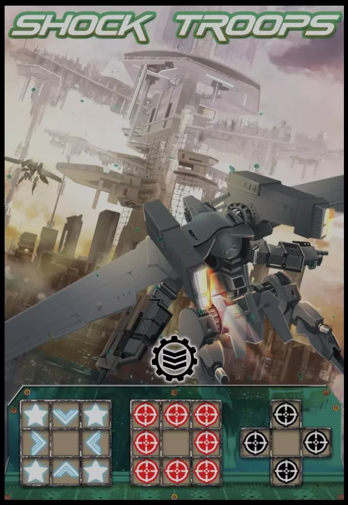 拥有扩展补给线图的强化步兵。可部署在与已放置卡牌呈对角线的相邻格子上。典型用途为摧毁与已放置卡牌在垂直或水平方向相邻的敌方卡牌。【突击兵】