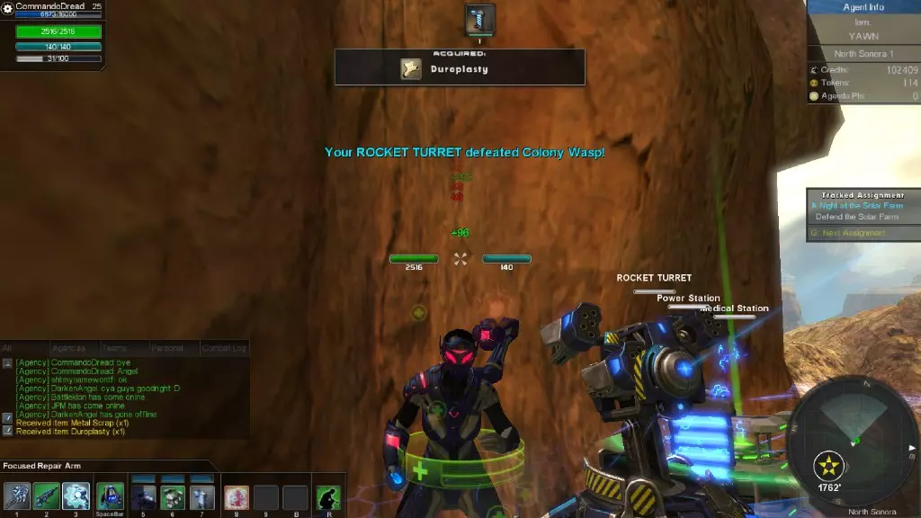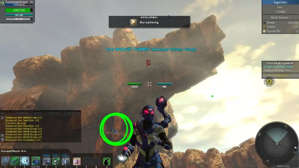 本指南将为你展示刷取经验值和组件(可出售换取 credits)的秘诀。 注意:刷取需自行承担风险。 所需条件 以下是你必须具备的物品清单: 1. 一个机器人学职业角色。 2. 能够进入北索诺兰沙漠。 3. 一个火箭炮塔。 以下是你可能需要的物品清单: 1. 医疗站 2. 能量站