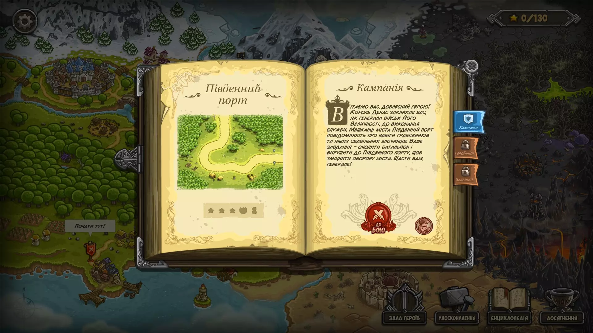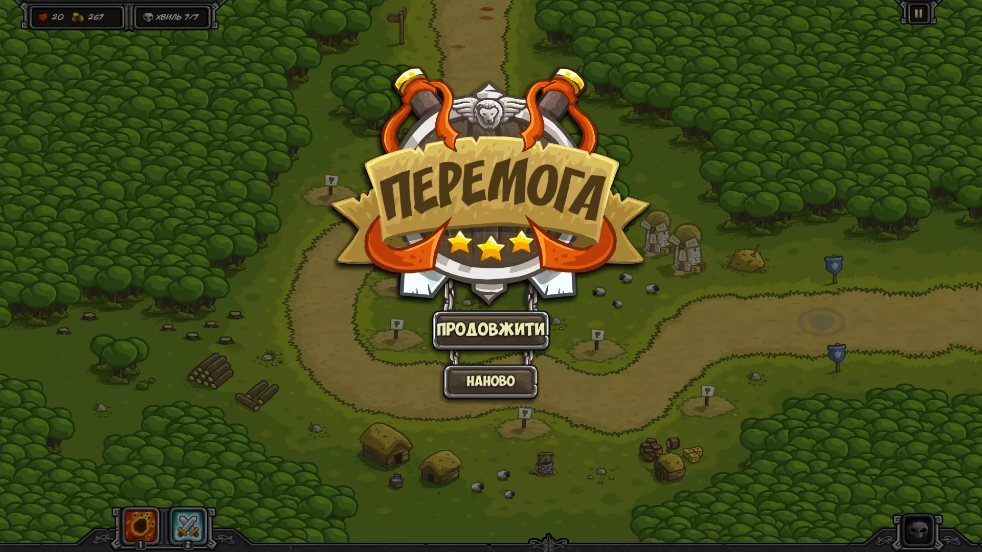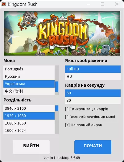 《王国保卫战》社区完整本地化! 详情: 翻译基于英文版本独立添加; 本地化适用于GOG和Steam版本的游戏。(暂不计划推出移动设备版本,原因是存在盗版内容传播风险);已完成游戏纹理和配音的完整本地化(特别感谢Lost Human团队);高清分辨率暂未适配乌克兰语本地化;此外,游戏中未使用的文本也已完成翻译,即通过模组添加的物品商店和无尽关卡也将支持本地化。安装步骤:1. 将游戏下载到您的电脑。2.3. 将.exe文件下载到游戏目录并替换文件。 4. 通过Steam appcache stats路径对Steam中的成就进行本地化(可选)。 5. 进入游戏目录,运行Kingdom Rush.exe文件,在启动器中选择乌克兰语。1. 将游戏下载到您的电脑。 2. 下载包含翻译文件的文件夹,并按照游戏文件附带的说明进行安装:在此之前,通过任意压缩软件打开游戏文件夹中的.exe文件。 ua.lua — _assets kr1-dekstop strings i18n.lua — all credits_data.lua — kr1-dekstop data screen_slots.lua, screen_slots-5.png — _assets kr1-dekstop images fullhd go_stage12-1.png, go_towers-1.png, gui_common-1, screen_credits-1.png — _assets kr1-dekstop images fullhd(非必需) YIKES.ttf, Comic Book Italic.ttf、ObelixPro.ttf、NotoSansCJKkr-Regular.ttf、NotoSansCJKkr-Bold.ttf — 桌面版字体资源文件 “Озвучення”文件夹中的文件 — 王国保卫战1桌面版音频文件(非必需) UserGameStatsSchema_246420 — Steam缓存统计文件(非必需) 对于GOG版,“GOG”文件夹中的features.lua — 王国保卫战.exe 3. 运行王国保卫战.exe文件,在启动器中选择乌克兰语。(仅以全高清模式运行,而非高清模式)
