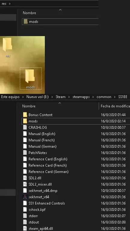 8)打开从下载文件中提取的“res”文件夹,然后提取“mods”文件夹。接着,将提取出的文件夹粘贴到游戏文件夹中。