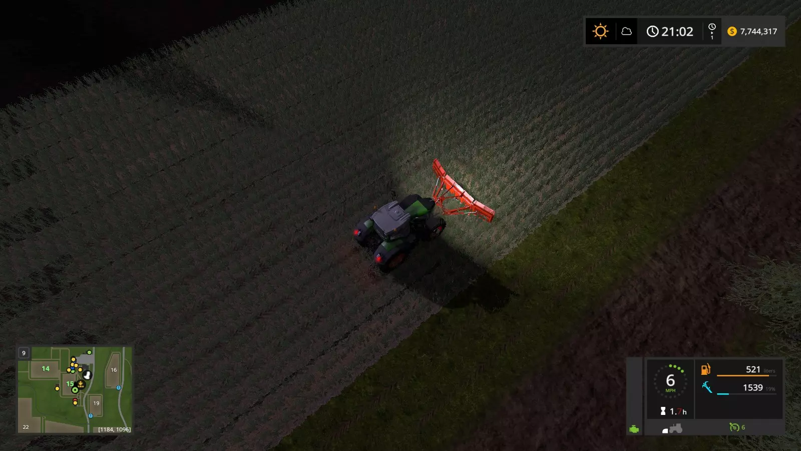 第三步:照常收割。密切关注你的填充计量表,因为当拖车装满时,甘蔗无法继续装载,会直接“被销毁”。(提示:如果你完成一行收割后,填充计量表超过50%,请立即卸载,否则在下一行收割结束前拖车达到100%时,甘蔗可能会被销毁(此提示同样适用于谷壳/青贮饲料)。)