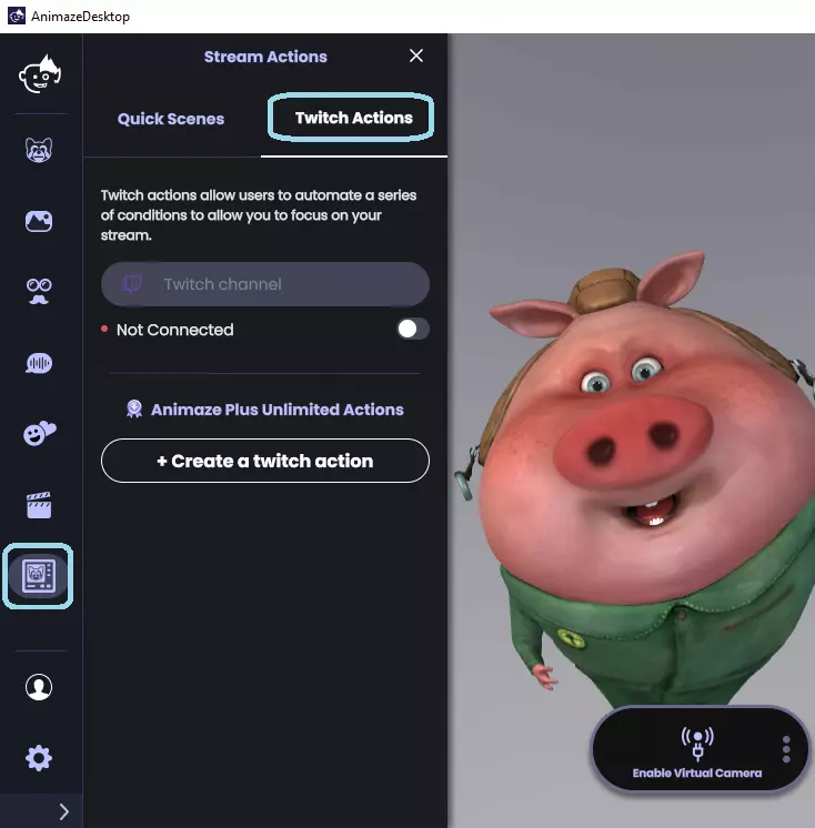 4. 此问题的解决方法是使用第三方应用SplitCam,它能让你通过该应用传输摄像头画面,然后将其用作输入源: 下载并安装SplitCam(免费)。 在SplitCam中创建场景,点击媒体图层的“+”号。 点击网络摄像头。 选择你的网络摄像头,然后点击“添加摄像头”。 打开Animaze,在摄像头画面上方的下拉列表中选择SplitCam Video Driver。