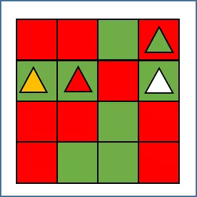 你有几个选择: 摧毁绿色符号以引发连锁反应,最终清空地图:绿色会将所有红色面板变为绿色,并在第一次传递时击中红色符号。然后所有绿色面板(即整个地图)再次变为红色,第二次连锁会摧毁黄色符号,接着是虚无符号。下一部分将整个地图变为黄色,最终清空所有 geo 面板。 改为攻击黄色符号:所有绿色面板会变为黄色,在第一次连锁中摧毁虚无符号。下一次传递时,所有黄色面板被清空。红色面板及上面的所有东西保持不变。 攻击虚无符号:所有绿色面板被清空。红色面板保持不变。 很简单,对吧? 现在考虑这个非常细微的变化: