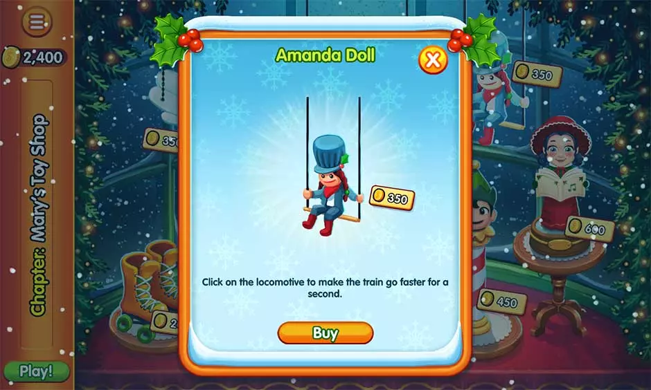 秘密5 位置:第5章 – 玛丽的玩具店 在商店中花费350金币购买阿曼达娃娃。在玛丽的玩具店的任意关卡中,点击运送额外玩具库存的火车头,使其暂时加速。
