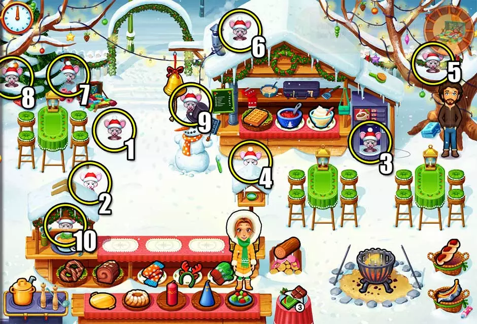 我们都曾想在平安夜偷偷下楼,看一眼圣诞老人往圣诞树下放礼物的样子。在本指南中,你可以一窥《美味餐厅:艾米丽的圣诞颂歌》里精心隐藏的秘密。但要注意!如果被圣诞老人发现,你可能会被列入淘气名单! 本指南内容参考Bodie Cambert制作的官方游戏攻略。 秘密1 位置:第一章——艾米丽的花园 在第一章的任意游戏阶段,在商店花费350金币购买冰鞋。你永远不知道它们什么时候会派上用场!实际上,这些冰鞋将在第61关派上用场,届时艾米丽和佩奇可以去滑冰。秘密2 位置:第二章 - 乔治的火车站 在商店花费250金币购买【百叶窗装饰】升级。在第17至20关的任意时刻,点击右上角柜台上方的滚动百叶窗,即可查看一条特殊信息。圣诞快乐! 秘密3 位置:第三章 - 奇迹特快列车 选择第三章的任意关卡后,在商店花费250金币购买【火车拉绳】。点击现在挂在左上角的拉绳,机械师阿曼达会吹响火车汽笛。火车汽笛声一响,你正在玩的关卡中的老鼠就会弹出。呜呜!