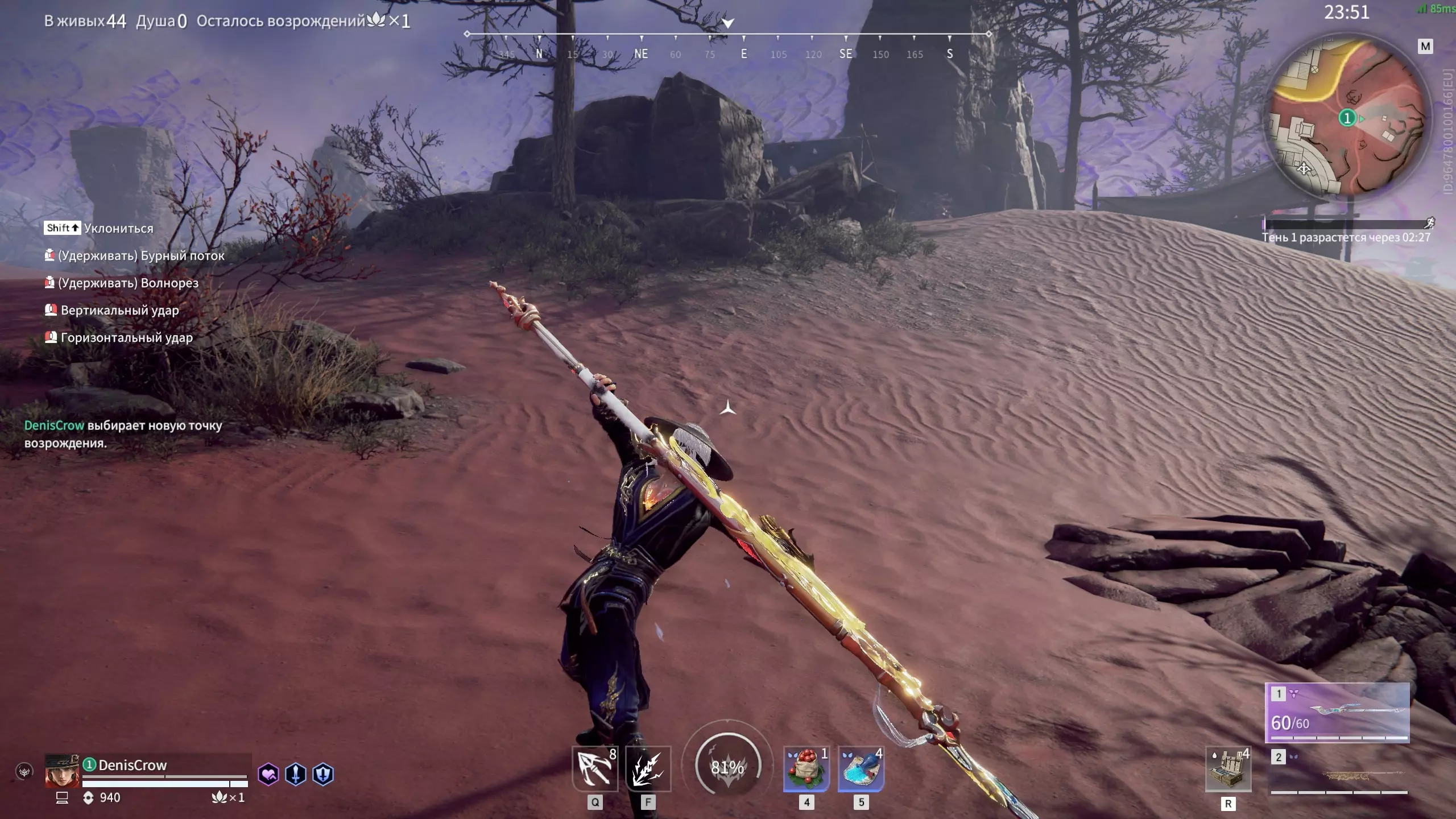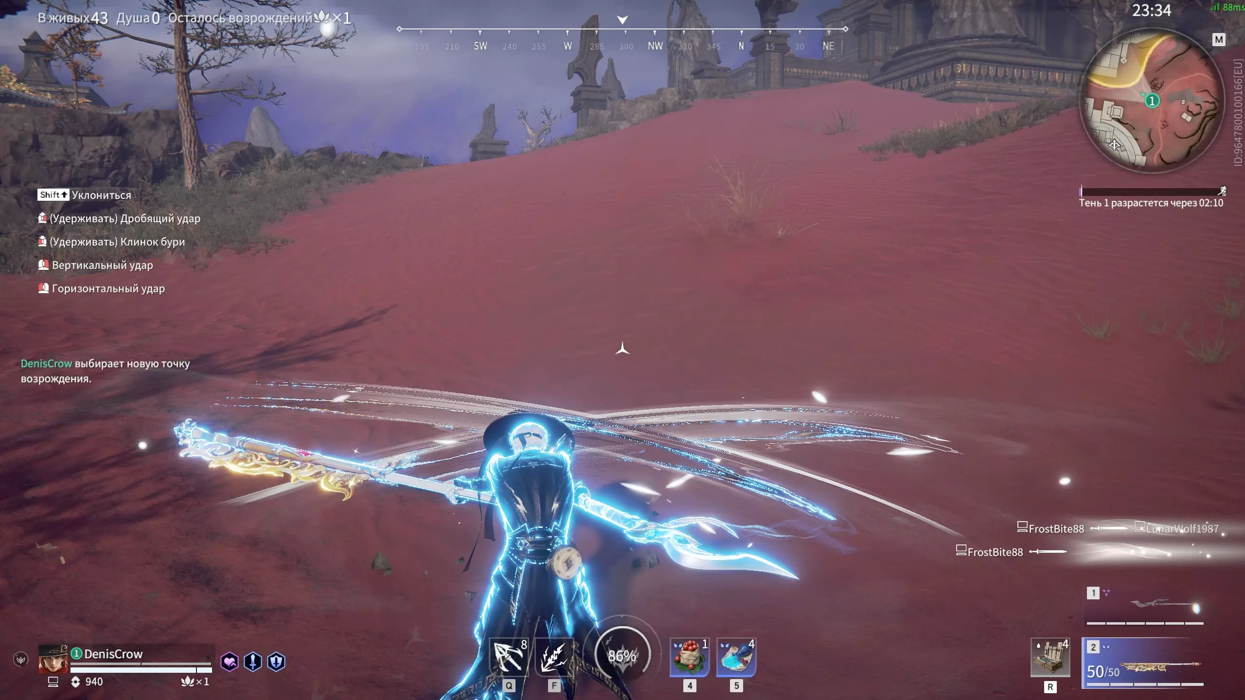 (补充内容)你可能不知道的连招 该连招需要装备两把同类型武器才能施展,也就是通过切换武器获得的武器。要施展此连招,需在武器攻击动画即将结束时,切换到另一把武器(以我为例切换到2号武器),然后按下任意攻击键(竖劈或横斩)。然后按下相反的攻击键,就像普通连招一样——这样就能形成双武器连招,持续时间长且造成大量伤害。重点!这个攻击完全是蓝色的!