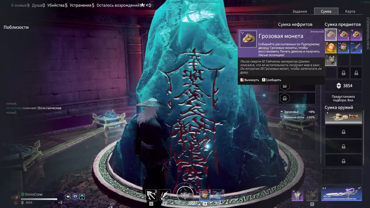 《永劫无间》【狐之灵韵之谜】 1. 若要获取【狐之灵韵】,需收集7枚雷纹古币。这些古币分布在紫宸殿区域内,可能出现在该区域的池塘中,或主殿(二楼)及附属建筑内。它们仅会出现在桌子、柜子或花丛上。