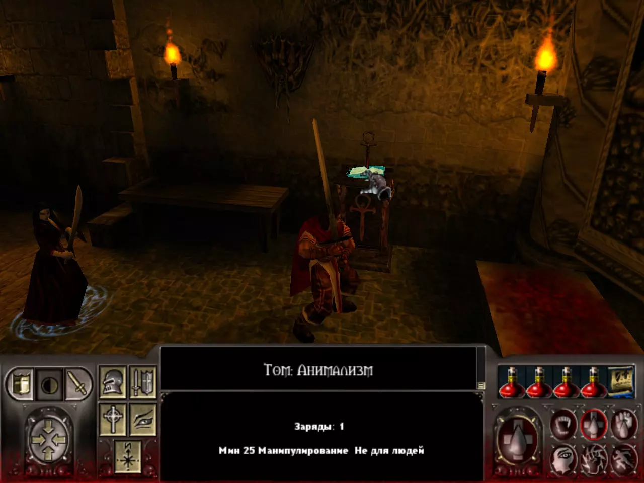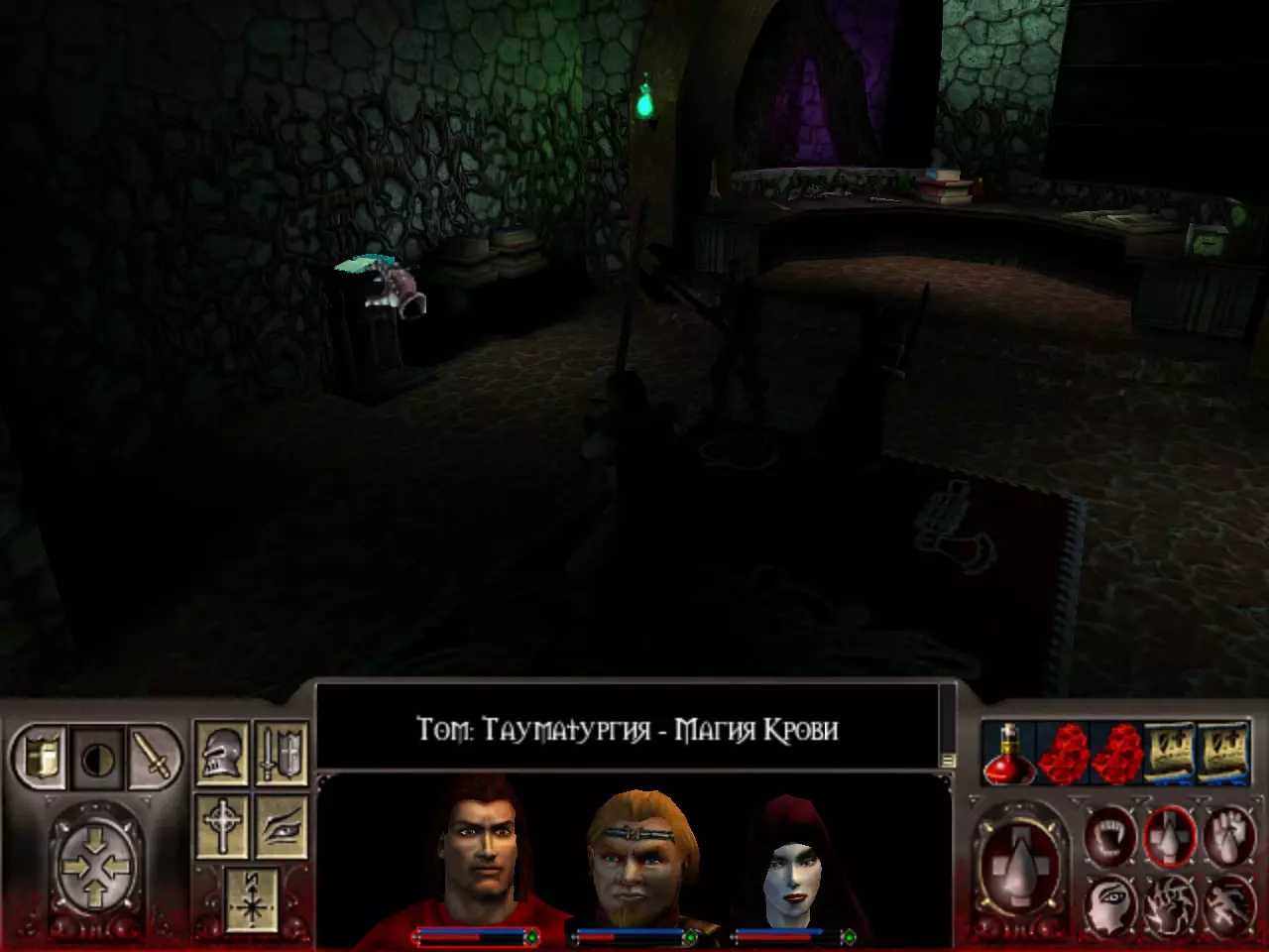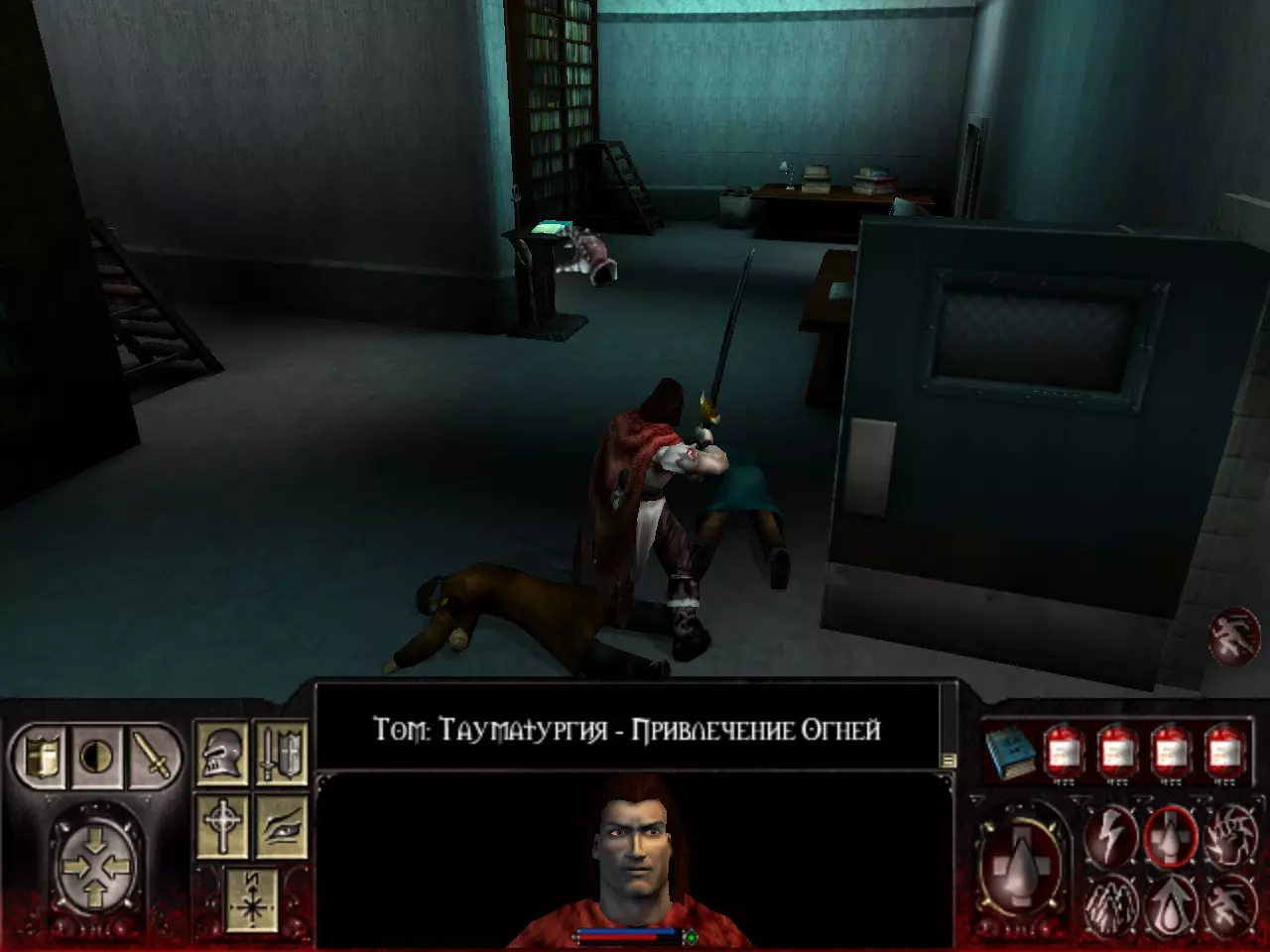 汤姆:血魔法(Тауматургия) 第二个神器在关卡末尾等着我们。找到它并不难。它位于通往第三关的入口和被囚禁者的位置附近。