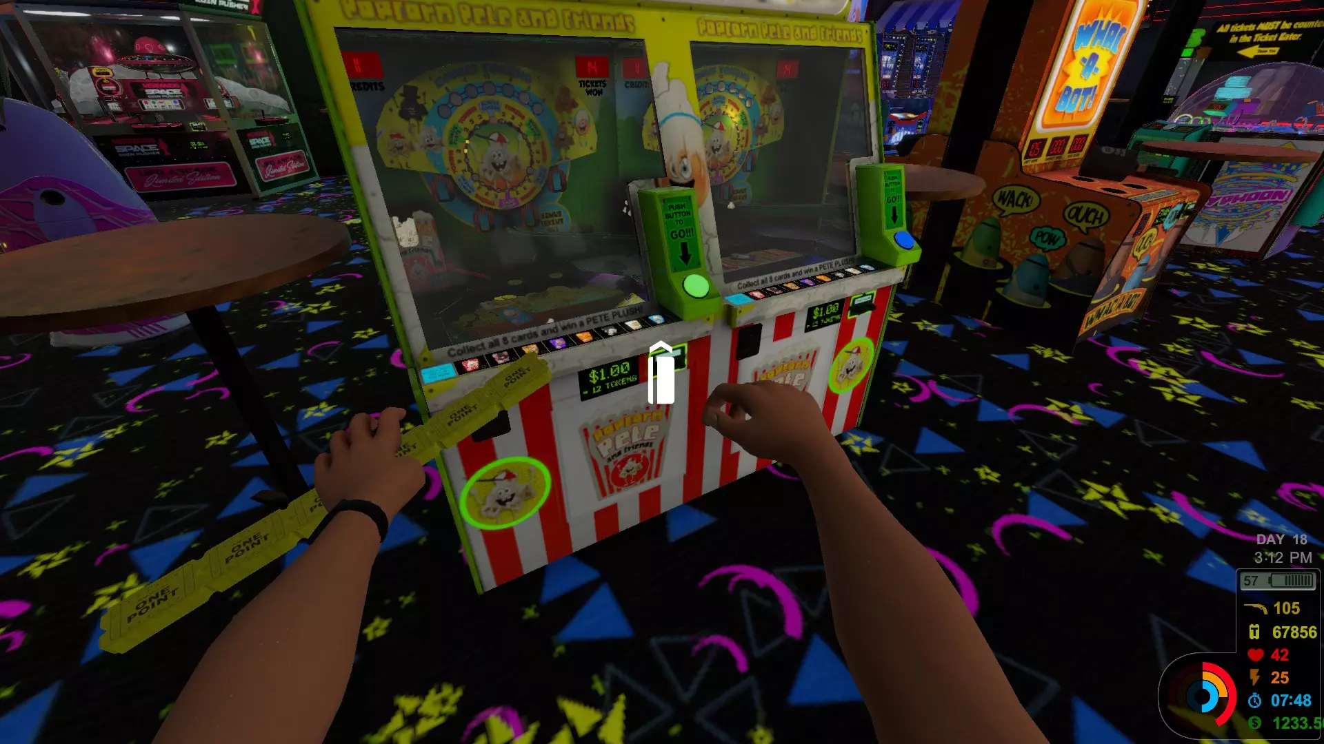 在本指南中,我将介绍两种能获得无限金钱和票券的漏洞。这两种漏洞均已向开发者报告,因此预计它们最终会被修复。 这两种漏洞在生存模式下均有效,并且可以随意复制。 通过Squalr、Cheat-O-Matic、Cheat Engine等工具进行内存编辑不在本指南的讨论范围内。 无限票券(已修复) 前往Islandville购物中心。在去那里的路上,从垃圾桶里捡任何随机物品。我用的是一个空可乐罐,但任何你可以捡起、放下并移动的物品都可以。 走到最左边的抓娃娃机前,放下罐子,然后按住鼠标左键,将它通过奖品槽拖进机器里。继续将它拖到架子上,用它把票券盒撞到机器底部。几秒钟后,每台机器都会生成另一盒彩票。继续这样操作,直到另一台机器装满,彩票开始直接掉到机器底部。如果你愿意,可以将可乐罐拖过两台机器之间的隔板来帮助加快这个过程。 有人告诉我,同样的技巧也适用于奶牛机器,但我没能成功复制,当我试图移动它们时,垃圾直接穿过了奶牛。 值得注意的是,这个技巧并非适用于所有机器。有些机器会让你放入的物体消失。其他机器有自己的内部碰撞系统,不会对异物做出反应。但抓娃娃机不属于这类机器。无限刷钱 查看镇上任何显示巴里当铺当前需求物品的公告板。获取其中任意一件物品(如果需要更多票券,可使用上述无限票券漏洞)。将物品带到巴里当铺并放在传送带上。注意此时价格是正常价格的两倍——但不要按下出售按钮。而是将物品留在传送带上,走出建筑。转身直接返回,你会发现物品价格再次翻倍。再次离开并返回,价格会继续翻倍。 我发现价格上限约为7万美元,超过此金额后价值会变为负数。但也有人发现没有上限,你可以自行尝试看看会发生什么!当物品价值超过20000美元时,按下出售按钮,然后等待巴里用100美元钞票给你付款。在钞票出来时收集它们——大量积压的钞票有时会从游戏世界中卡出(这本身可能还挺有趣的)。 如果你有更多高需求物品,可以重复此操作。 如何处理你的钱 前往超市购买6罐可乐和6盒绷带。 当你能量不足时,喝一罐可乐。 当你生命值较低时,喝一盒绷带(看看播放的动画,你就知道玩家角色简直是在喝绷带)。 然后你可以做任何你想做的事,随时补充门票和金钱。 记住要在宵禁前回家,否则你的生存之旅将以被禁足告终。