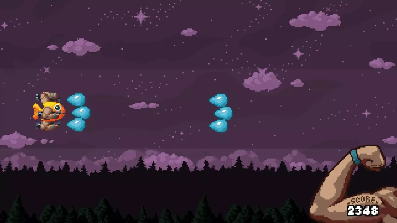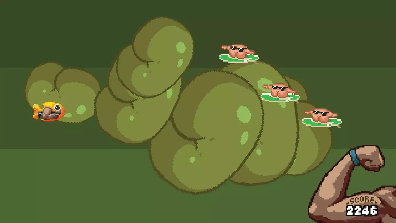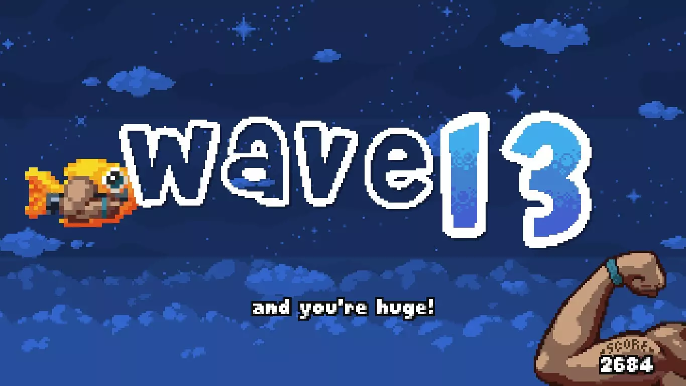 这个独特的类似铲子骑士风格的小棍会给你一个小鱼盾牌,这些小鱼会和你一起射击,但它们的子弹更弱更小。
