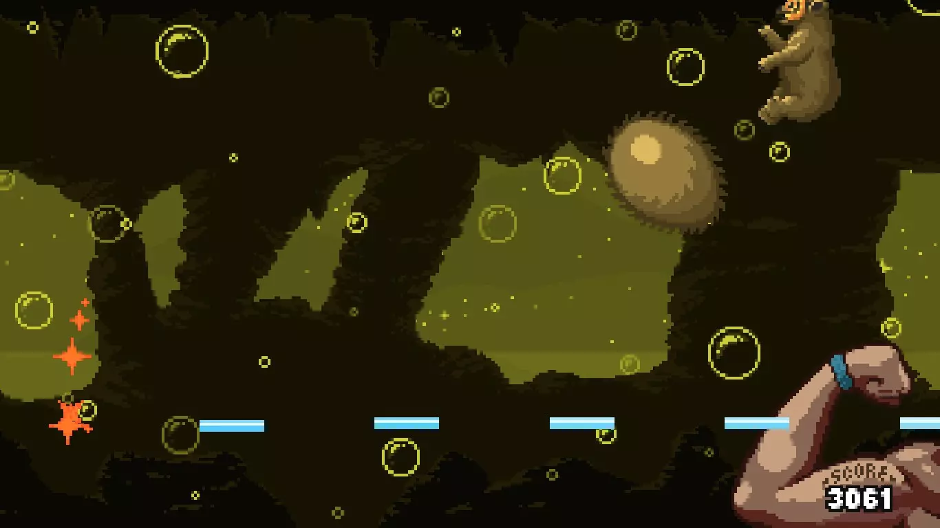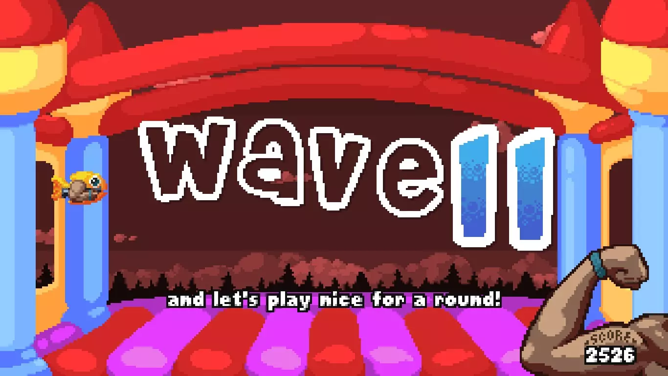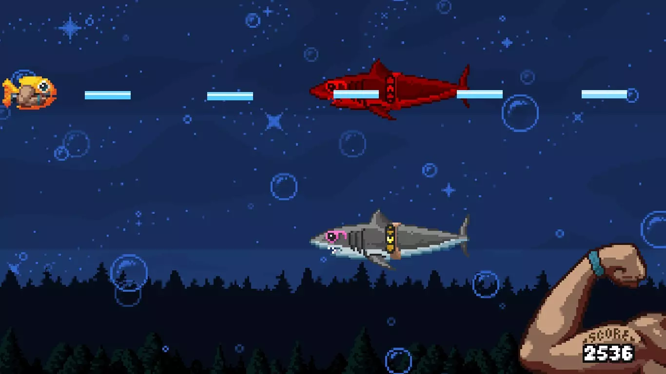 这个独特的类似铲子骑士风格的小棍会给你一个小鱼盾牌,这些小鱼会和你一起射击,但它们的子弹更弱更小。