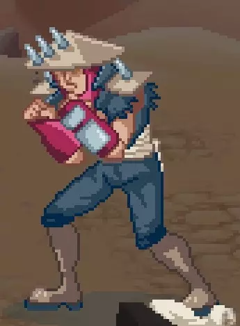 敌人外观(上方) 敌人描述、攻击模式及战术 单独行动(当敌人单独出现时,可采取的消耗敌人的行动) W....P..W....P 群体行动(当敌人成群出现时,可采取的消耗敌人的行动,此情况可能有所不同) W....P..W....P 注意:上述列出的行动并非规则,而是练习应对每个敌人时机的指导方针。除非另有说明,否则你可以使用格挡、闪避或推击来反击敌人的攻击。 草帽打手 标准类型的打手,会使用拳击。这些敌人没有太多特别之处,不过其深色变种会在【深色敌人】部分介绍。 红色打手,又称壮汉