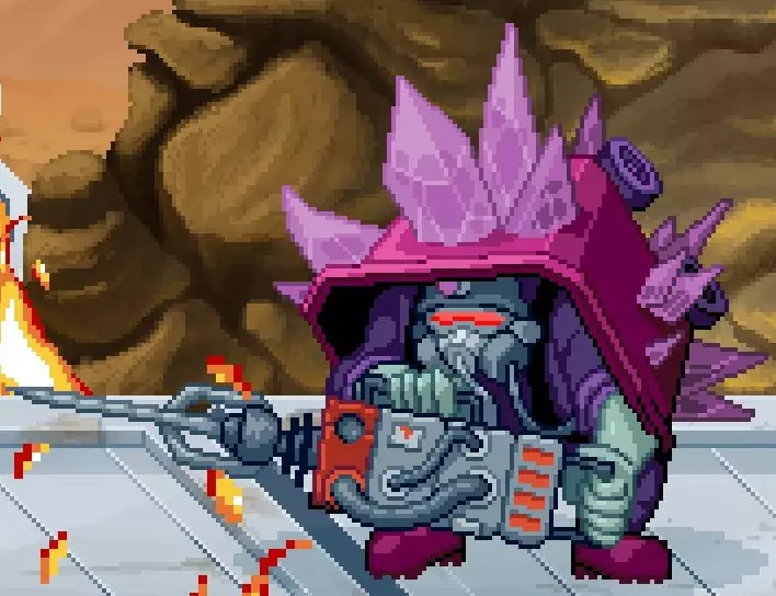 这些敌人的行为类似变异幼株,但需要使用超级技能I才能击败。你也可以使用超级技能II或III来击败它们,但这会浪费资源和连击点数。 单独出现 W .. P/DO . W .. P/DO 群体出现 W .. P/DO . W .. P/DO 黄色机器人,又称瘦长蒂姆