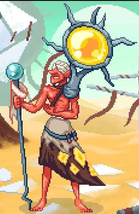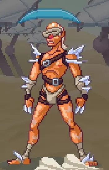 这种投掷者是最难对付的,因为其投射物呈弧形投掷,这可能会让大多数玩家失去平衡。判断第一个飞盘命中所需的时间,然后采取相应行动。 单独/群体投掷 W . T .... P . DO/P 单独/群体近战 W ... P 飞刀投掷者 太阳崇拜者 又名 费莉西蒂
