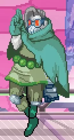 这些机器人不过是你的廉价仿制品,它们会使用超级招式一和超级招式二试图击败你。如果你记住自己超级招式一和超级招式二的攻击时机,对付它们或许不会太难。但你不能对它们的所有攻击都只靠闪避,因为它们的第一击或第三击会命中你。 单独/群体 W . P . W . DO . W . P 机器人 - 远程型 这些敌人的行为类似投掷者,但由于它们不会力竭,需要精准的闪避或使用超级招式一、二或三才能击败它们。 绿色远程机器人,又名解剖者