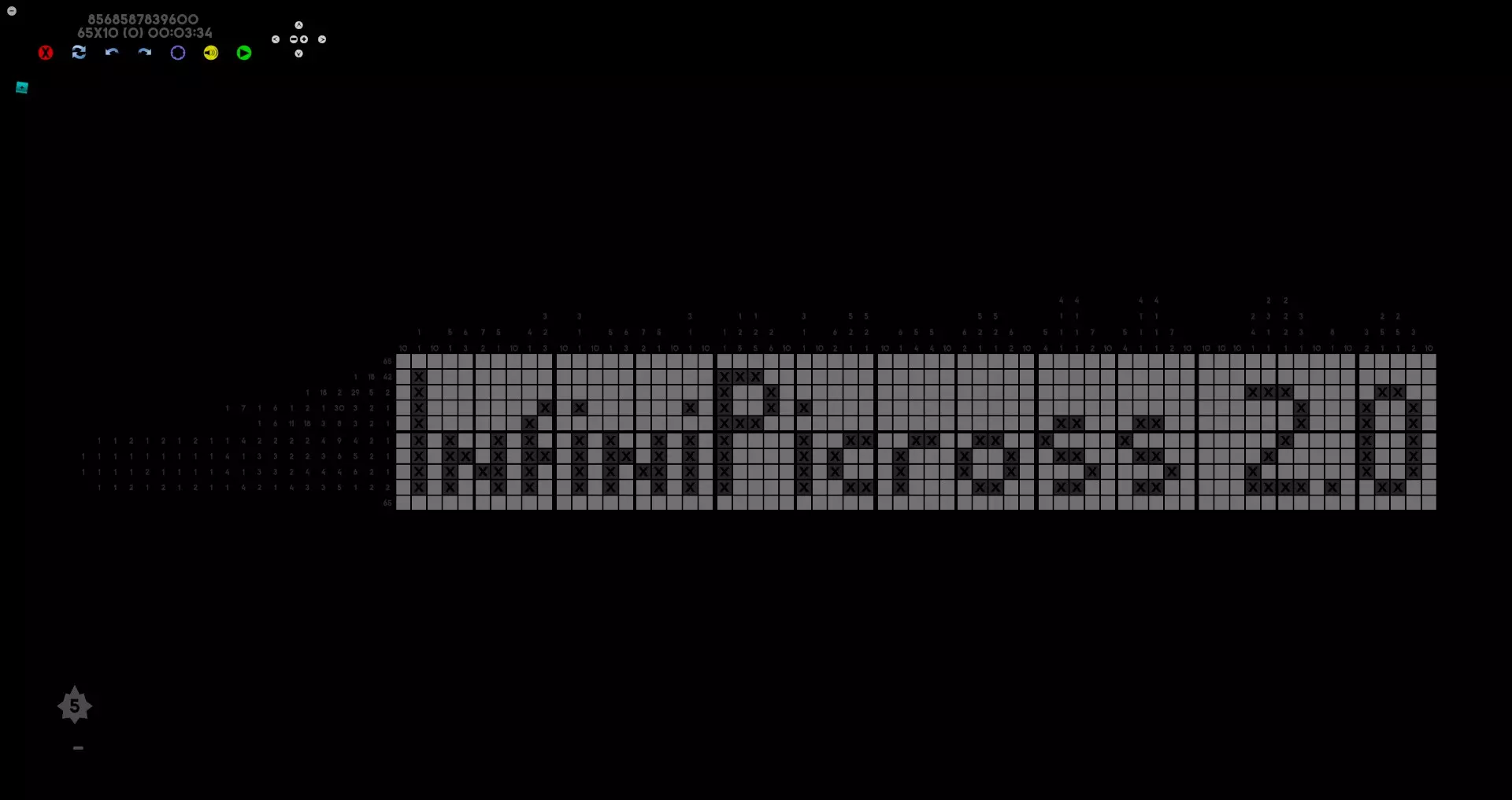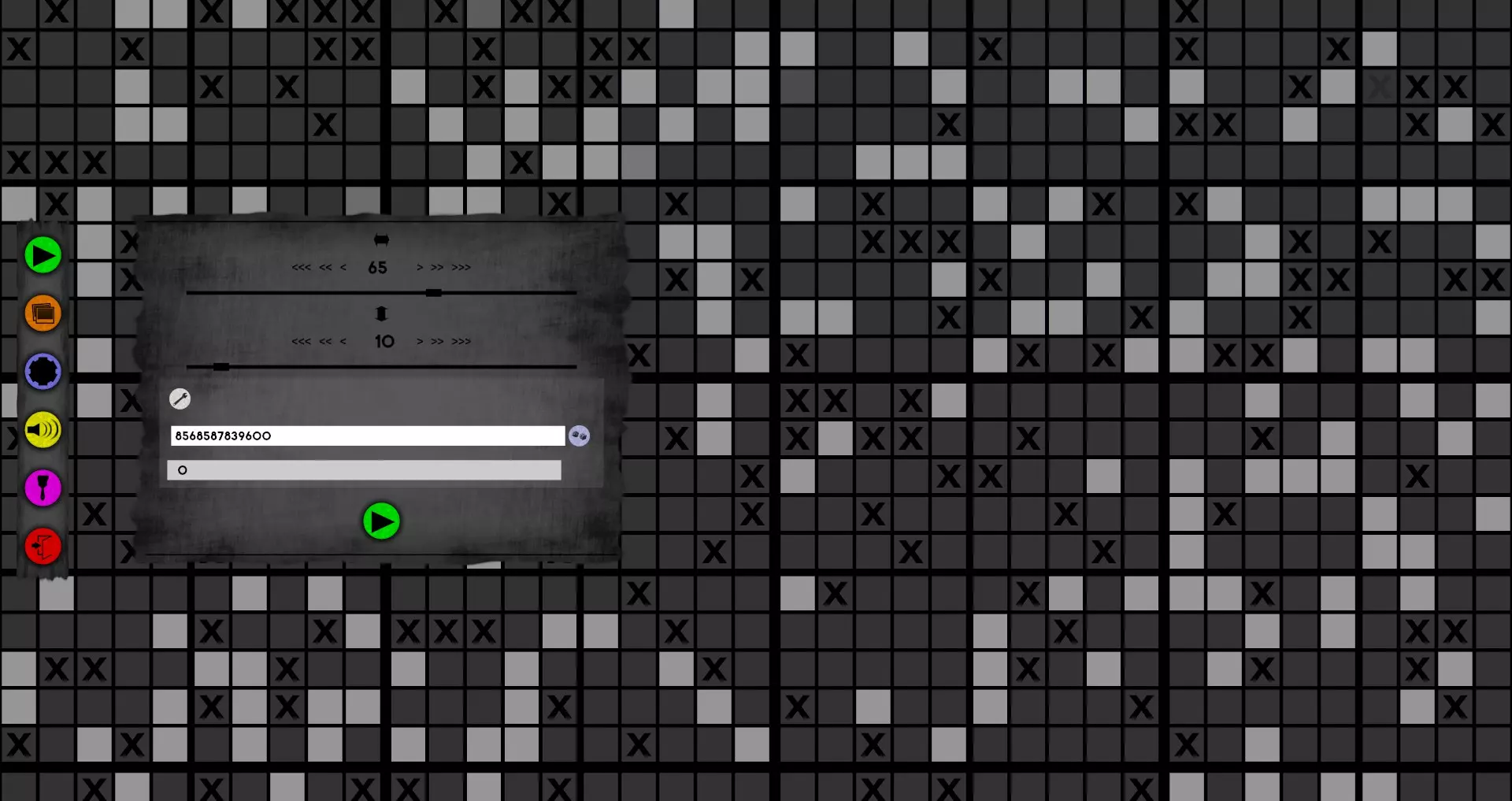 创建谜题(左上角绿色按钮) 设置尺寸为65(宽)x10(高) 点击扳手图标 在上部输入框中输入:8568587839600 然后按下下方的绿色按钮 完成后,成就将解锁。