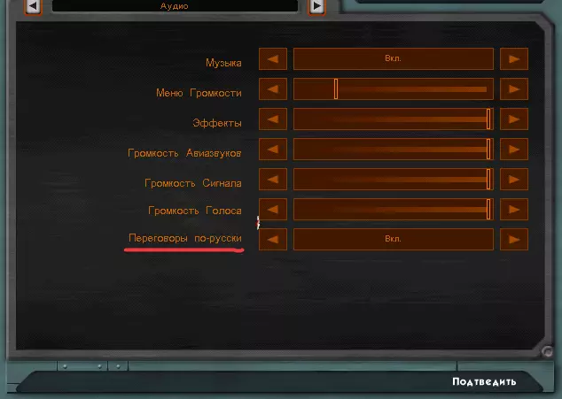 如果安装了俄文补丁,语音会自动切换为英语,若要改回俄语,需进入声音设置。