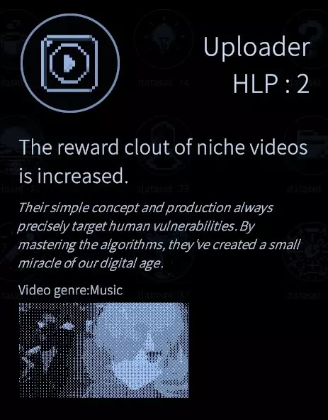 NO.0 - 解锁所有奖励点数。 首次通关后,每次开始新游戏时都能访问奖励点数菜单。根据初次游玩时的行为,你可能已获得部分点数。奖励点数不会消耗,取消选择某个选项后,该点数可用于其他选项。点数不可叠加,总共可获得6点。 奖励点数1 - 以少于10万粉丝结束游戏。粉丝数量可在左上角查看。通过不发布视频,专注于休息和/或勇气训练即可达成。 奖励点数2 - 以10万以上但少于100万粉丝结束游戏。这可以通过发布视频直到达到10万粉丝来实现,然后专注于休息和/或勇气训练。 奖励点3 - 以超过100万粉丝结束游戏。奖励点可用于在开始游戏时获得更多数据收集和粉丝。一旦将你的HLP数据收集配置到满意状态,就专注于上传尽可能多的同类型视频。专注于能增加粉丝数量和影响力的选项。 完全不了解真相/奖励点4 - 在游戏过程中不进行勇气训练。 努力触及真相/奖励点5 - 在游戏过程中仅进行2-3次勇气训练。揭露真相/奖励点6 - 使用5个奖励点解锁勇气训练增益,并在游戏过程中尽可能多地进行勇气训练。额外内容及全部CG