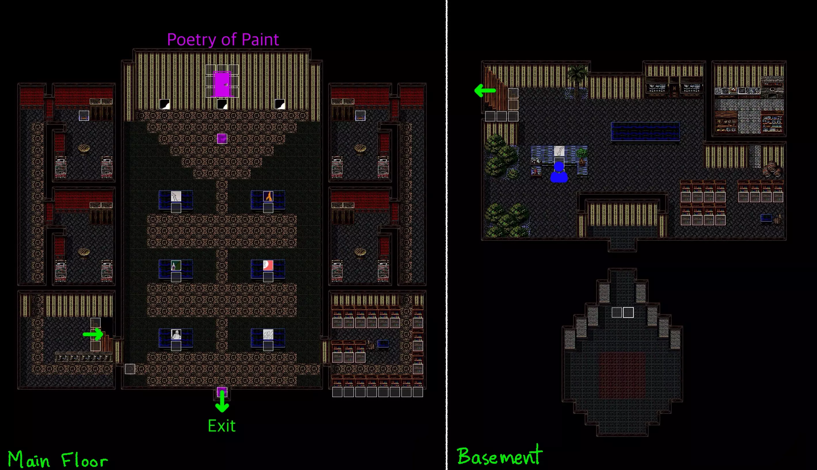 这座宅邸包含主楼层和地下室。主楼层本质上是一个可供互动的陈列室。需要注意的是,这座宅邸属于【木海女巫】。你或许应该和她交谈并进行自我介绍——我相信不会出什么岔子! 我曾听说过一个传闻,这座宅邸还通向【绘画诗篇】——一个由【绘画诗人】创造的全新维度。然而,进入的唯一途径是通过一幅画作……或许【木海女巫】知道些什么。 抽象通道
