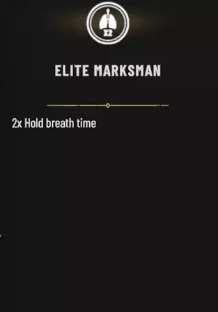 5. 最后是【精英射手】这个特长,也是我个人的最爱。该特长能让你的屏息时间延长至普通状态的两倍,这意味着你可以在一次屏息中消灭大量敌人,并且它拥有无限使用次数。虽然这只是个人偏好,但到目前为止,它绝对是射手职业最棒的特长。