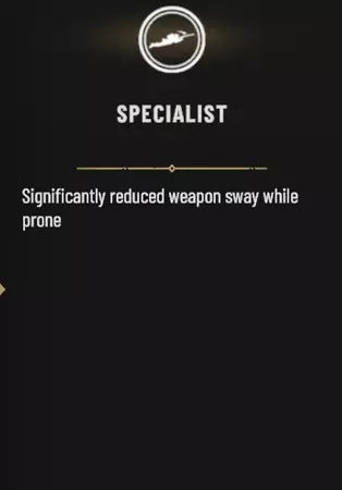 【专家】特长通过在蹲伏或卧倒时消除武器晃动来提升你的潜在精准度,这能让你获得更好的杀敌机会。这个特长非常实用,绝对不会让你失望。