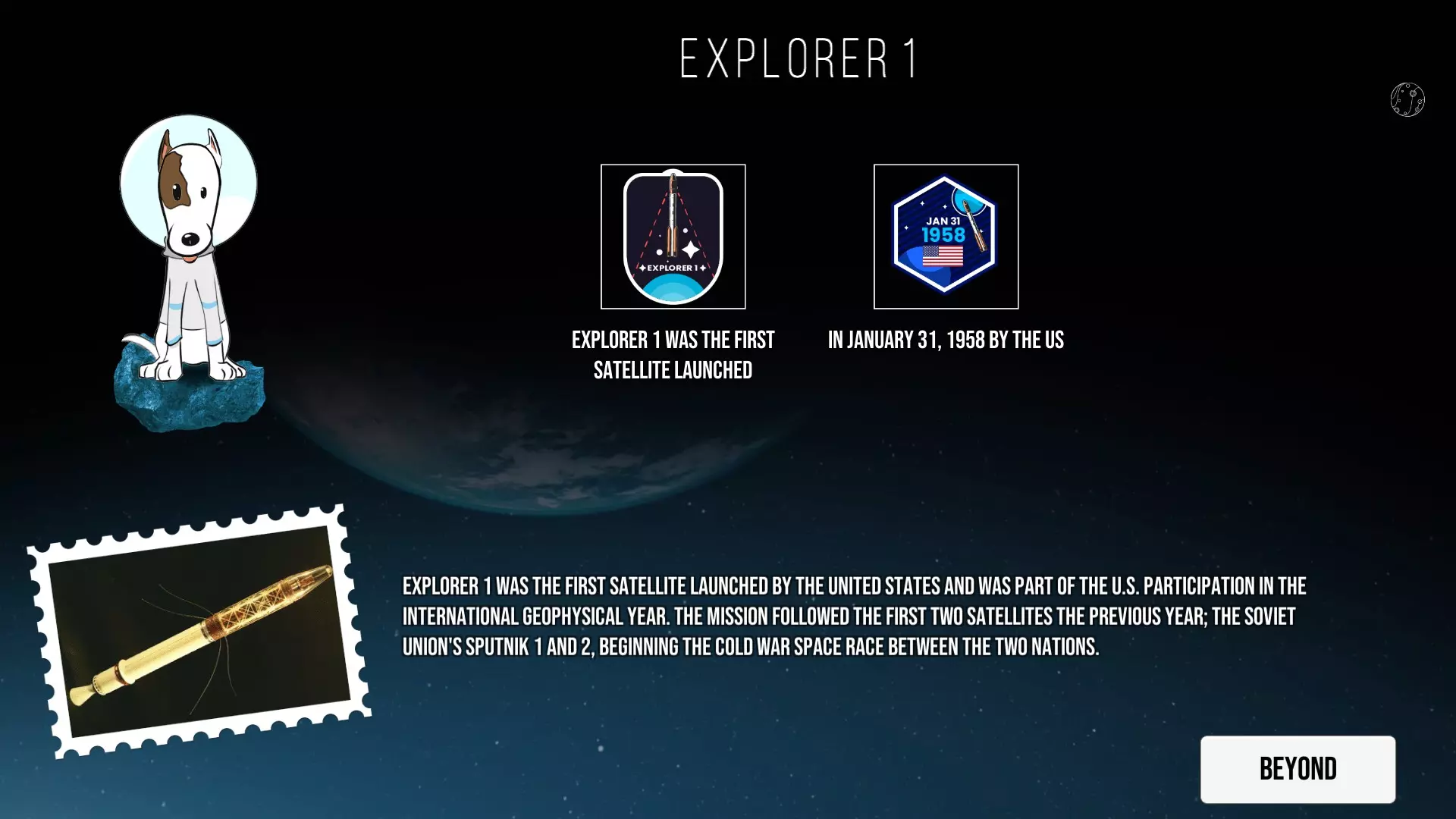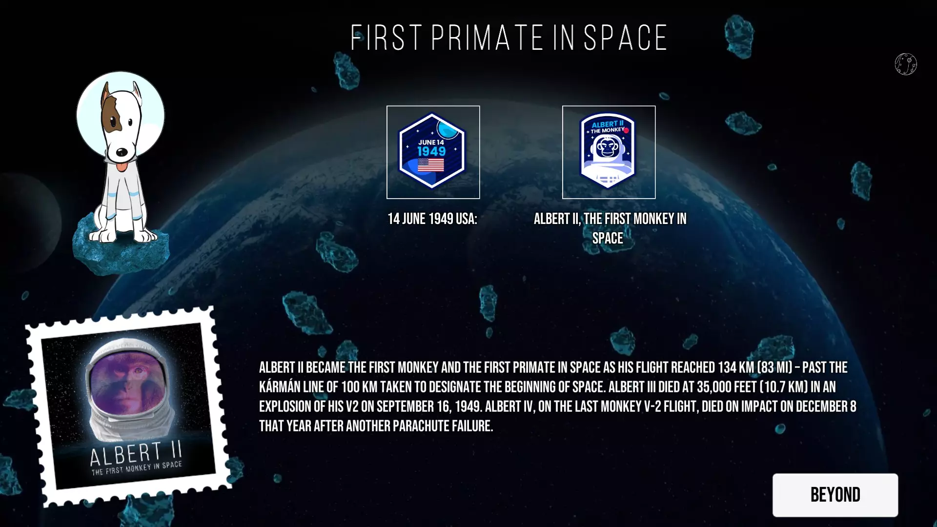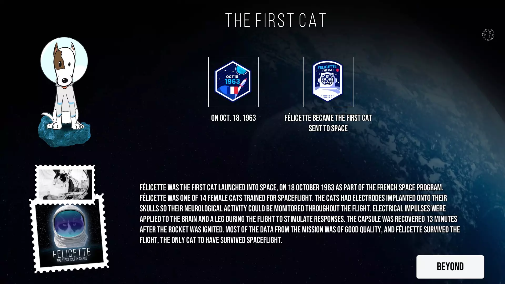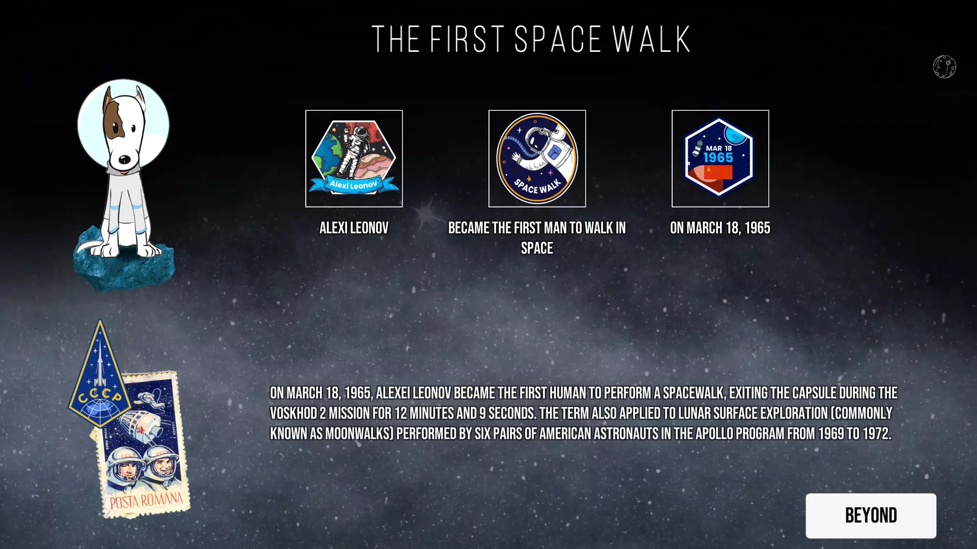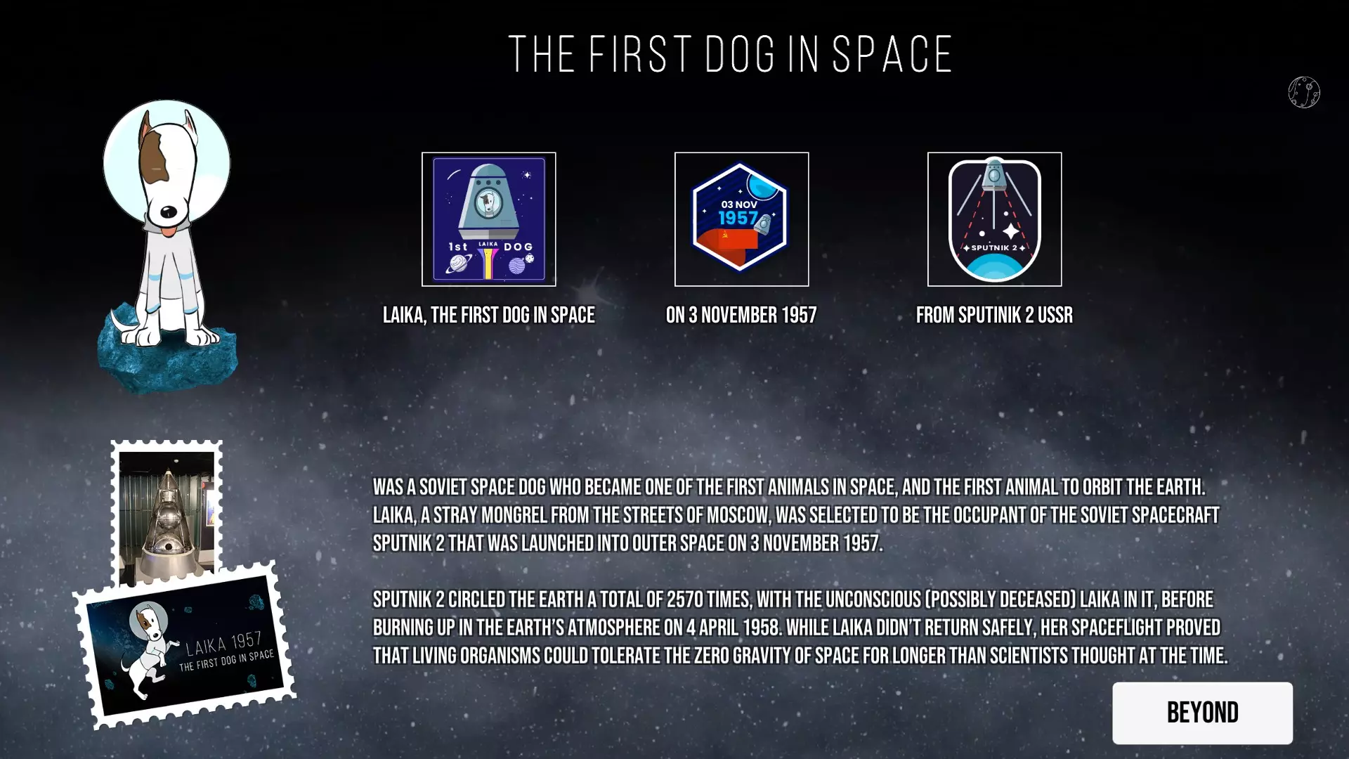 这是《Kosmo Laika: Guide to Space》的图文攻略,因无官方中文译名未汉化。攻略以趣味形式呈现太空探索史,涵盖从1609年伽利略天文观测,到1969年人类登月等诸多里程碑事件,还有动物太空探索、航天器发展等内容。