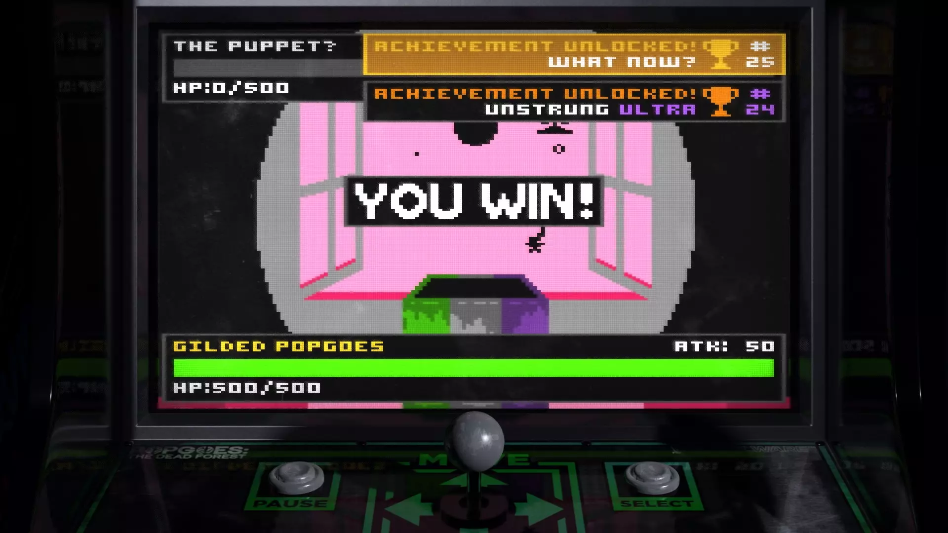 (附:如果有人在雕像关卡获取Unstrung Ultra成就时遇到困难,只需持续使用护盾和攻击力提升技能即可。这个成就更多依赖运气(考虑到整个战斗的主题,这很合理)。我用了将近20个护盾,花了大约一个小时尝试各种增益组合,才找到不会让战斗变得无法进行的搭配(说的就是你,疾病……)。并且千万不要忘记始终激活破盾效果,有好几次不错的尝试都因为我在攻击前忘了激活新的破盾效果而提前结束了。)