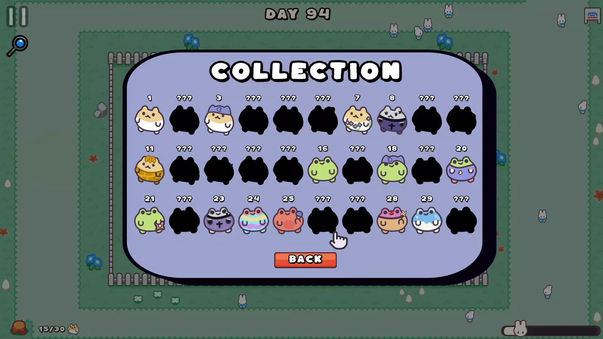 《饥饿生物》游戏概念、操作与机制简易指南 目标 《饥饿生物》的玩法是捕捉并收集可爱的生物,以扩充你的收藏直至完全集齐(包含30种不同生物和2种特殊生物,这部分内容将在后续说明)。 你拥有的生物越多,就会有越多访客出于好奇来到你的农场。但同时,在《饥饿生物》中,生物会对访客产生“饥饿感”,所以农场的访客越多,就越能吸引更多生物。 你的目标是收集这些新生物,同时还要努力防止它们在这个过程中吞噬所有访客!
