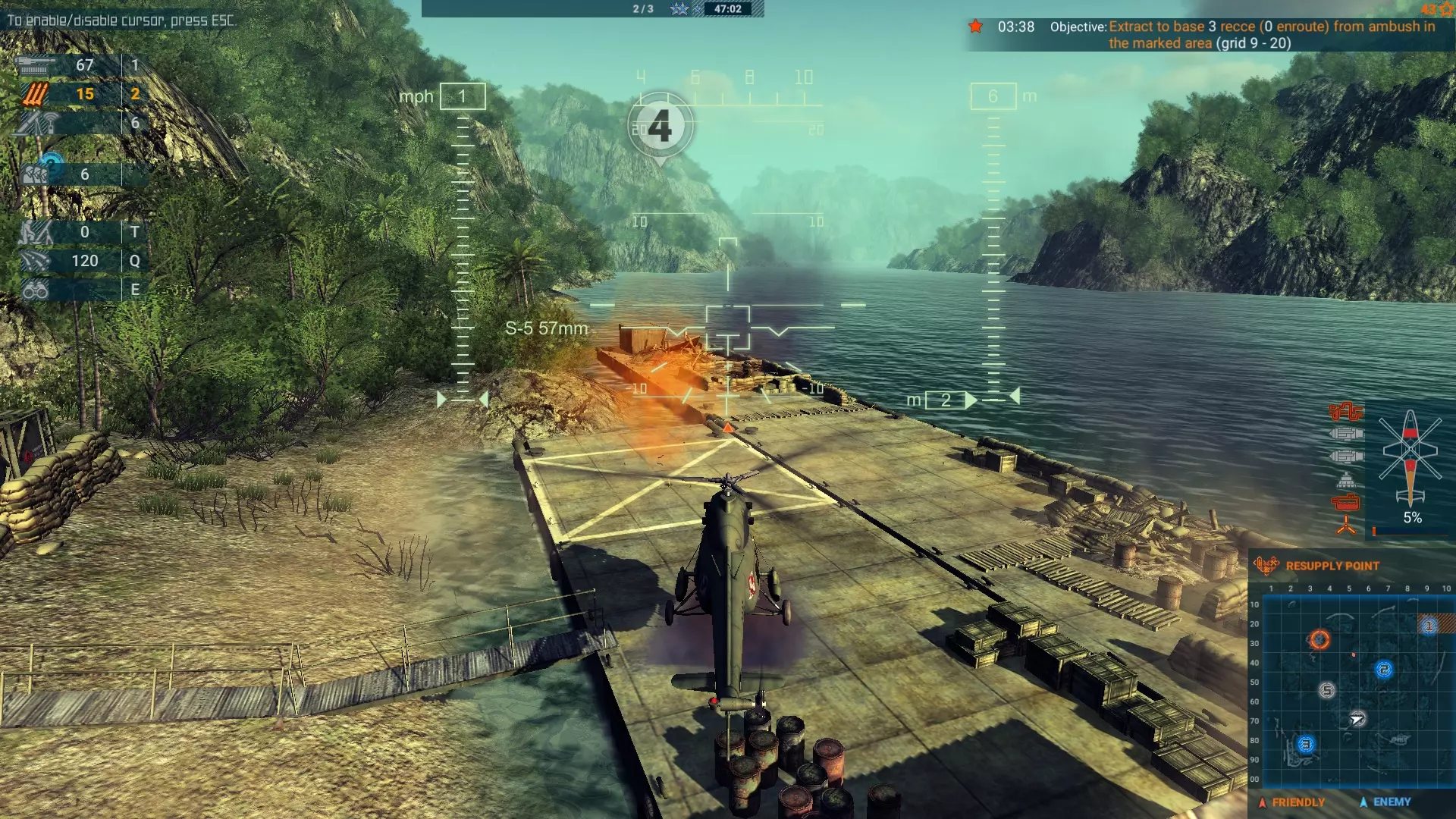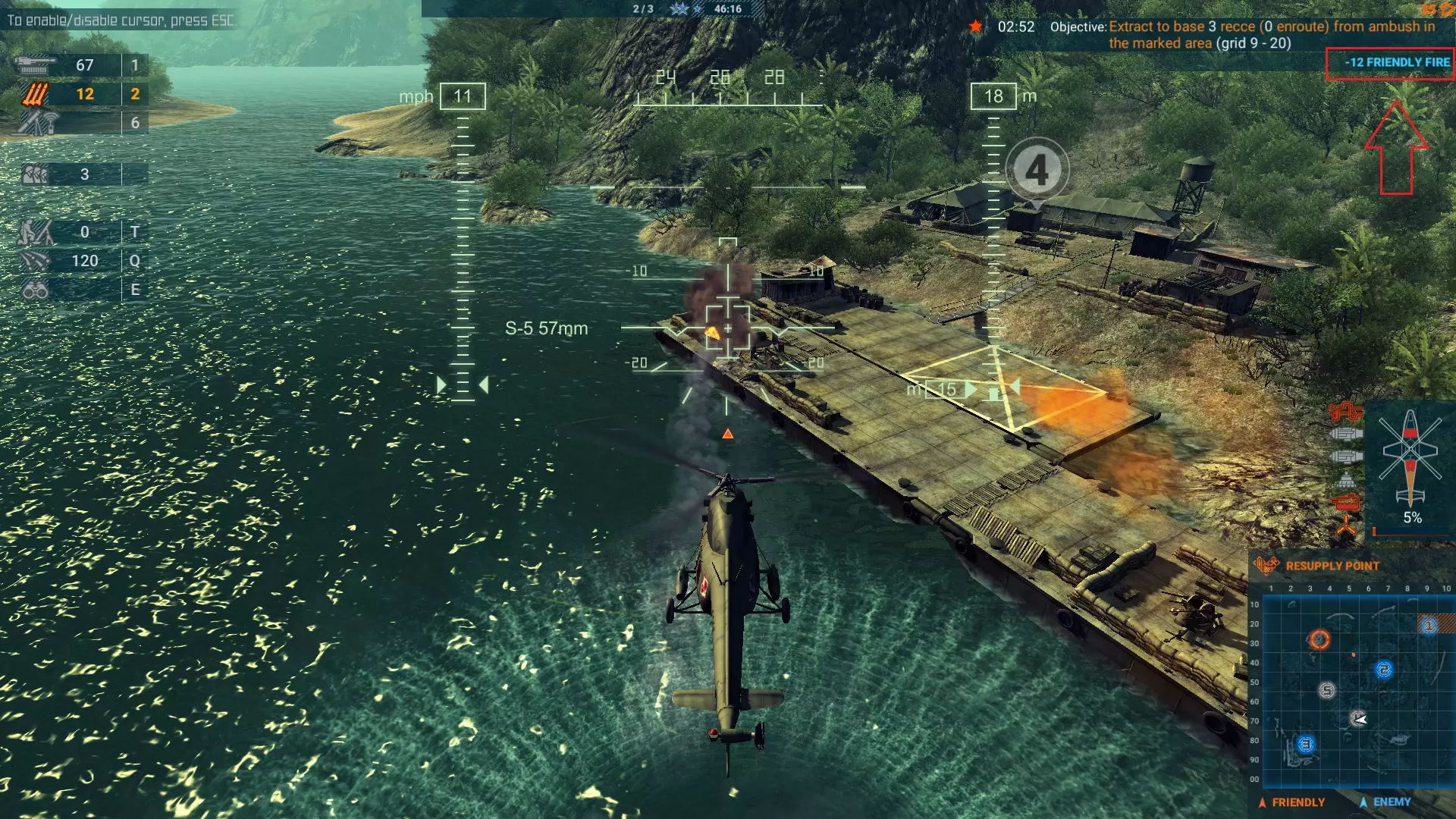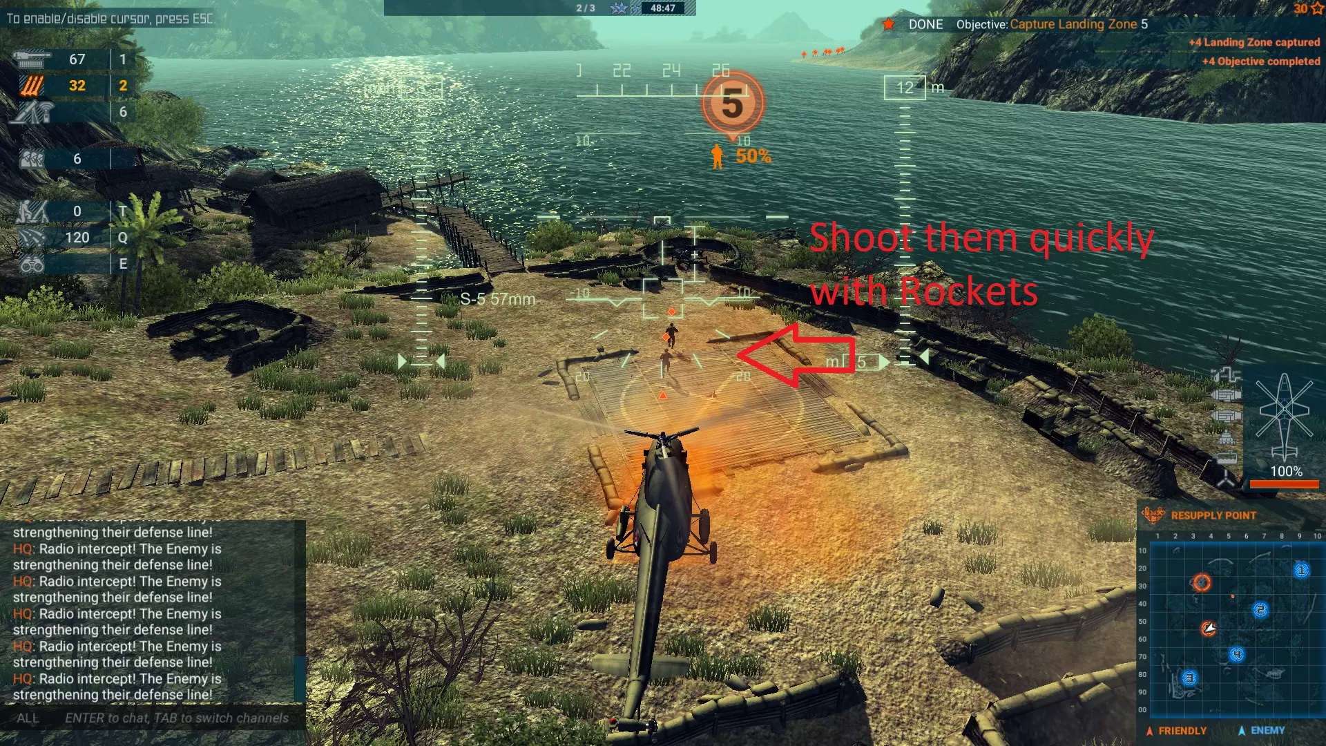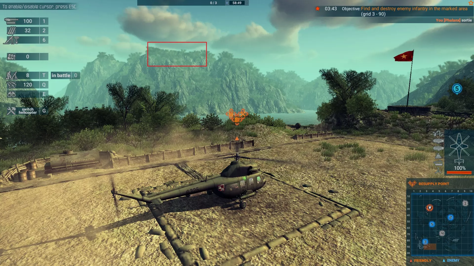 在此处着陆并面朝这个阵地,你将有足够的时间释放一组部队,并在他们离开直升机时进行射击。基地4