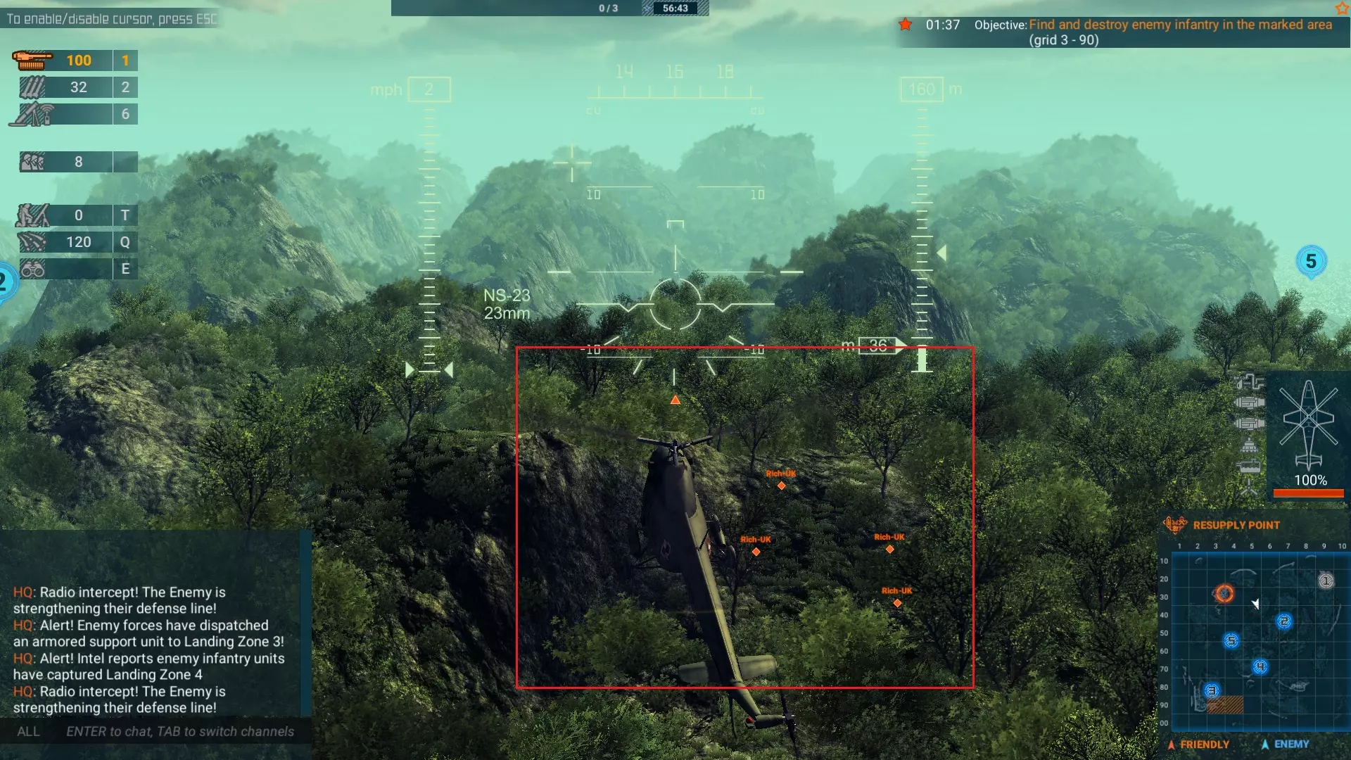 你将驾驶【方阵】直升机飞往我用红框标记的山顶,并将它们部署在那里。