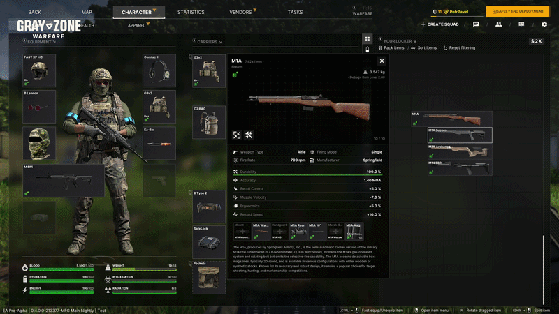 武器 新增8款武器:Alien、L403A1、M16A1、M1A、M14、Sa vz. 58、雷明顿788型.222以及M-201C 新增超过380个武器配件,包括全新组件以及现有组件的额外颜色变体 新增放大镜功能 放大镜是玩家期待已久的功能,现已上线。它能显著提升你的有效射程。只需一键即可翻转开启或关闭,为战斗带来更多灵活性。武器自定义与视觉效果 - 9种独特的枪械迷彩变体 - 12把为Boss战设计的独特铭刻武器 - 部分瞄准镜新增多种准星颜色变体 武器手感与平衡性调整 - 武器属性已全面更新,更精准地反映其操控特性,包括瞄准速度、晃动幅度、惯性、换弹速度及重量 - 武器重量现在会影响第一人称视角下的人机工效、晃动、移动加速度和瞄准速度 - 弹道计算系统优化,更好地平衡了拟真度与游戏性,使各类武器和弹药在不同场景下都更具实用性 - 武器耐久度消耗速度加快,促使玩家在高风险情况下才使用最佳装备。弹药类型也会影响耐久度消耗,部分弹药会造成更严重的武器磨损弹药详情现在会显示弹丸无法穿透的最低护甲等级以及耐久度消耗。 手动拉栓 为栓动步枪添加了手动拉栓功能。《灰色地带战争》更新内容 1. 枪栓循环可推迟至释放扳机后进行,让玩家能保持瞄准状态,观察射击效果后再进行下一发循环操作。 2. 为最常用武器及新增武器添加了全新的武器检查动画。 3. 改进了武器音效,方向定位更清晰,音调过渡更自然流畅。 4. 装备方面: - 新增超过150件装备,包括部分现有装备的全新颜色变体。 - 推出33种独特的现有及新增装备的首领变体。 - 重新平衡头盔防护性能,使其提供更具实际意义的保护,子弹口径和速度将直接影响穿透可能性。 5. 望远镜与测距仪:可提前侦察区域,发现远处隐藏的敌人。使用测距仪可轻松测量与目标的距离,并调整归零以实现最大杀伤力。 检查窗口新增了附件界面部分,清晰显示可安装的插槽物品。 追踪标签持续时间已延长: 基础追踪标签1→3 追踪标签2→6 高级追踪标签4→12 战利品系统在本次更新中进行了大量改动。我们大幅扩展了战利品池以增加多样性,让探索更加刺激。 独特战利品数量翻倍,新增超过123种物品,包括箱子、食物、药品、医疗用品和贵重物品。 高价值战利品的生成率和种类已提高,以鼓励玩家在地图各处进行探索。《灰色地带战争》更新内容 1. 新增杂物类物品 2. 新增容器类型:弹匣、保险箱、注射器 3. 部分食物和饮料在食用后将提供增益效果,例如咖啡可提升耐力恢复速度 4. 新增面向新手玩家的功能