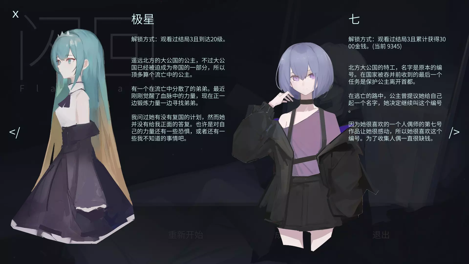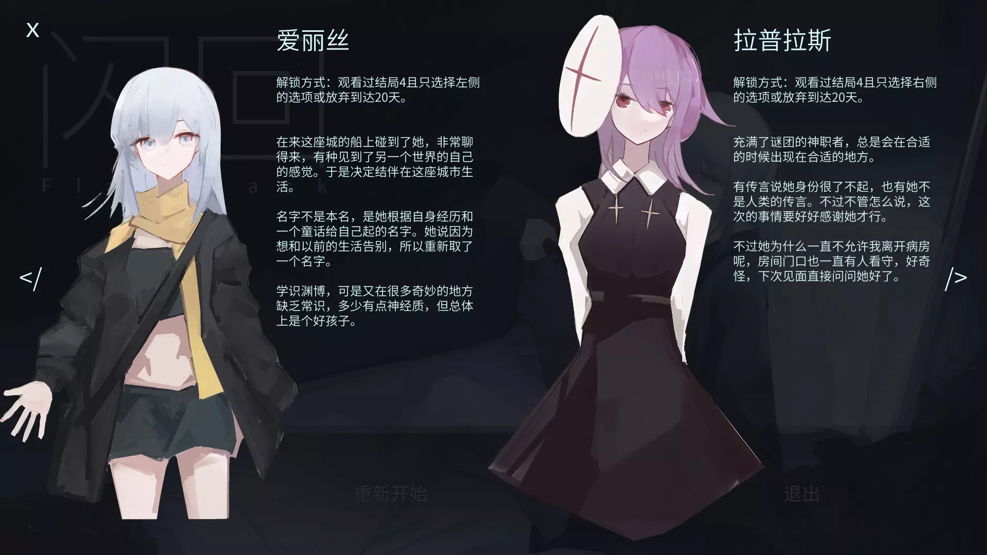 达成真结局后,标题页面中的镜子会破裂,人像会消失。