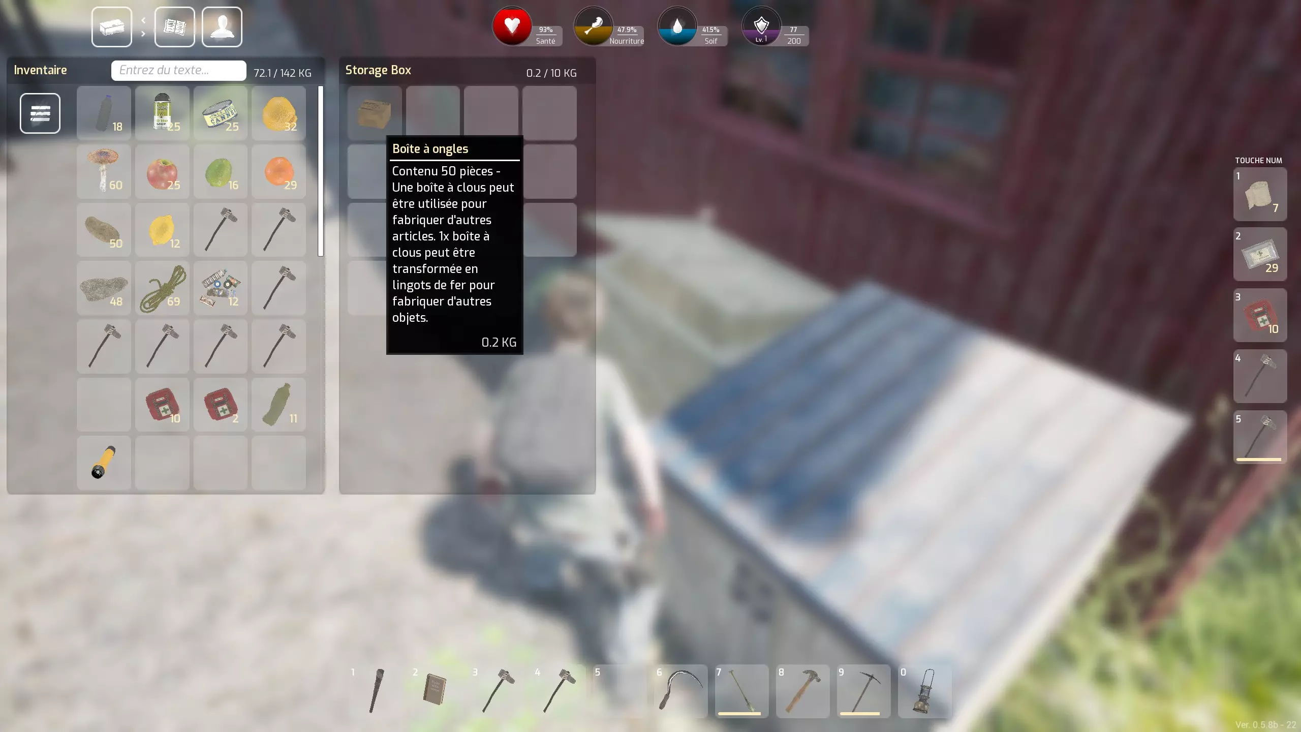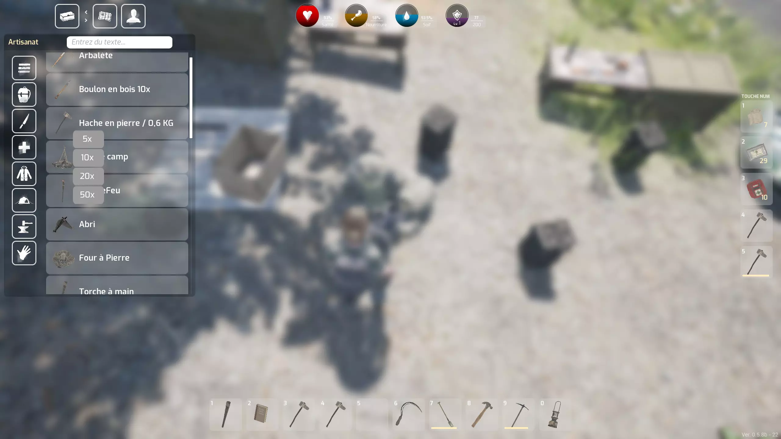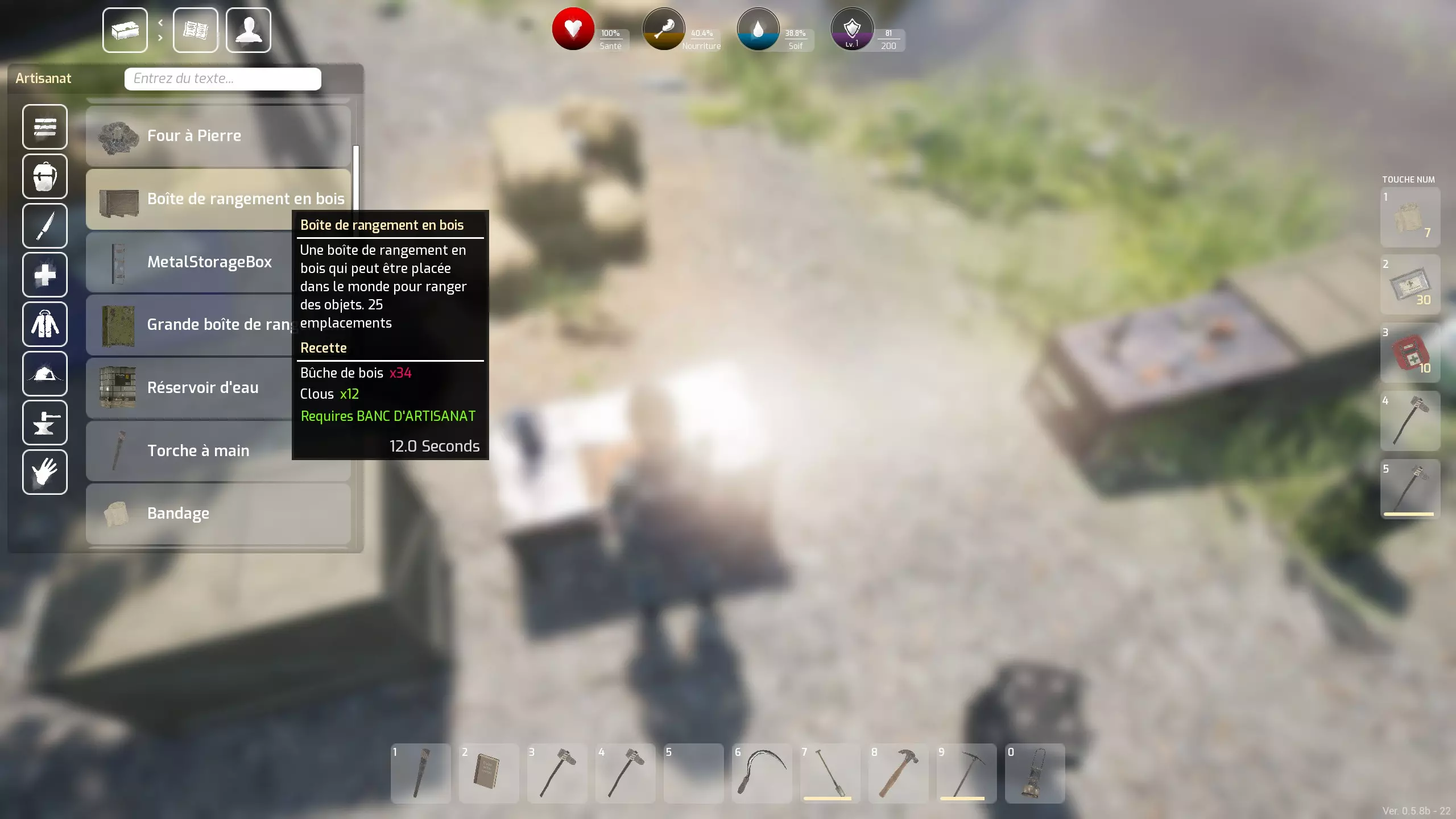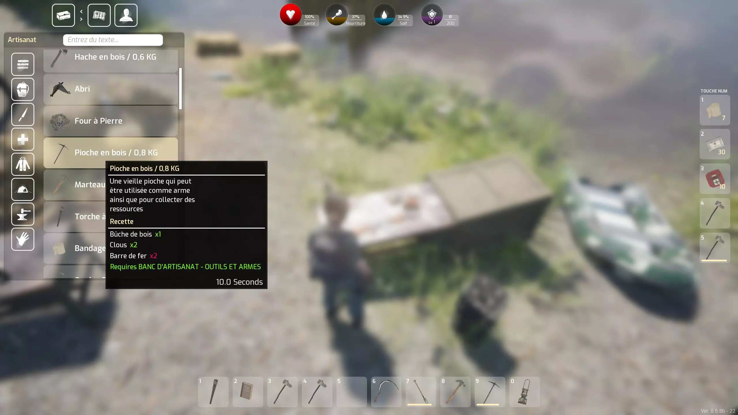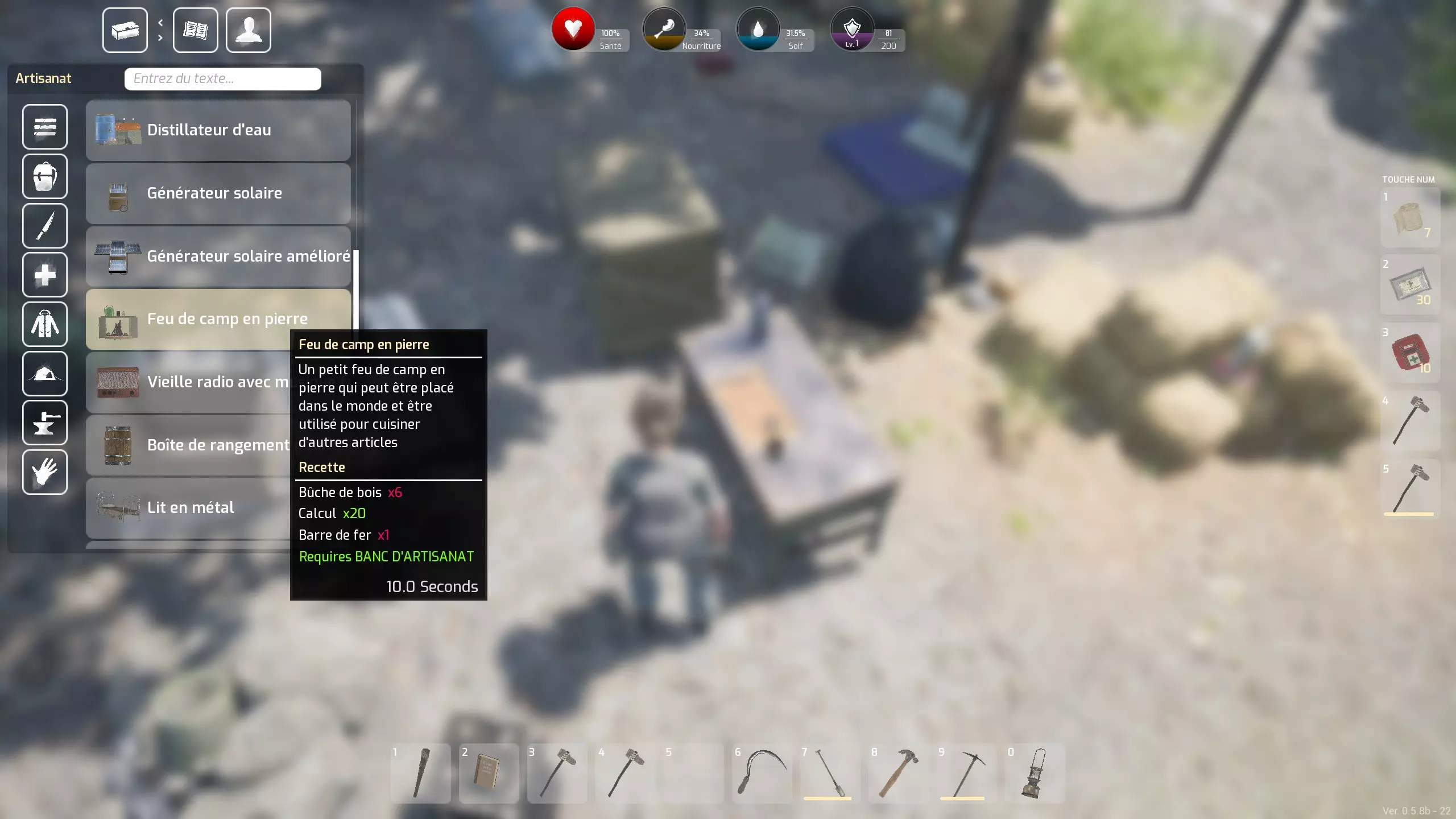 新手优先事项 - 制作系统 - 技巧与提示 你在岛屿或其他地方的初期体验 对于法语用户,需要将键盘重新设置为AZERTY模式,并根据自身需求选择按键:按ESC键可以轻松进行设置... 接下来,你需要选择世界 - 共有三个:岛屿 - 热带雨林 - 沙漠。无论选择哪个世界,你的初始体验都将相似... 首先,始终牢记游戏中的一个绝对必要事项:频繁检查你的营养和口渴值,否则你会死亡。 如何获取食物和水?主要通过搜寻物资:汤罐头、三文鱼罐头、各种水果(也能补充水分)等。此外,一旦你拥有斧头,还可以通过狩猎(野猪、鹿,甚至熊,但需自行承担风险)获取食物。斧头还能用来处理猎杀的动物,不过肉类需要通过营火煮熟后才能食用。同时,你也可以进行采集,一些罕见的灌木丛会提供各种浆果。 至于战利品,定期探索不同的建筑和车辆会很有乐趣,它们的物品会定期刷新。你抵达后的首要任务:收集原材料,至少制作五把石斧。这种斧头既是你的基础工具(可用于采集石头和木材——木柴以及部分纤维),也是你初期唯一的武器。 为什么是五把(后续甚至可能需要更多)呢?因为这些斧头磨损得比较快,而且万一你遇到一些攻击性野猪,在快捷栏里准备一两把状态良好的斧头总是好的。快捷栏位于屏幕右侧,有5个格子,你还可以在那里存放治疗物品——绷带和两种急救包,这些物品你会经常搜刮到。其中绷带比较少见,但你可以通过基础制作菜单来制作它们。要访问这个制作菜单,你需要通过你的物品栏:按TAB键,在左上角,首先是物品栏按钮,然后是第二个制作按钮,第三个是装备按钮。装备栏主要需要通过添加各种容器来扩充,这些容器会显著增加你目前受限的物品栏空间。这些袋子,你可以通过搜刮获得或自行制作(我从未找到过背包)。 需要收集哪些原材料呢?石头和纤维。石头可以在地面上找到,纤维则在岛上通过按“E”键采集蕨类植物,甚至灌木获得。在其他世界中,还有其他带有圆形叶子的植物等也可以采集。