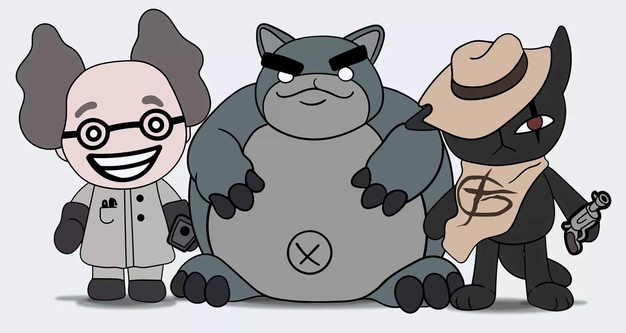 我们还在接受首批《喵喵的结合》毛绒玩具的预购:蒂娜、黄道和豆豆博士!(仅供参考,这些草图的比例不太对,蒂娜高16英寸,并且头部可拆卸!)