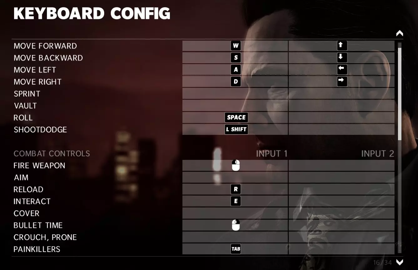 为了更贴近原版操作布局并增加难度,你可以将瞄准、蹲下、掩体和冲刺键重新绑定到键盘上任何难以使用的键位,比如小键盘区域,这样你就几乎无法使用它们。至于掩体系统,以及某些过场动画后直接进入掩体的场景,你可以通过子弹时间闪避或后退来脱离掩体。 为了最大程度还原原版操作习惯: 翻滚应设为空格键。 子弹时间应设为鼠标右键。 子弹时间闪避应设为左Shift键。