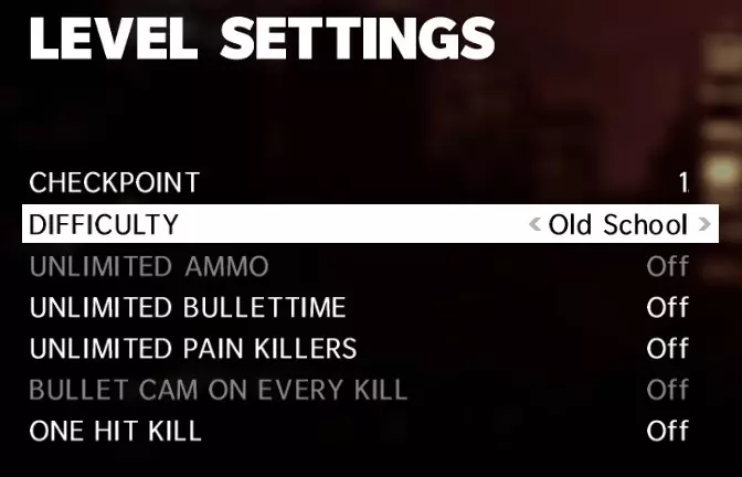 敌人会变得更加危险,马克思必须时刻保持移动并对发生的情况迅速做出反应,完全没有掩体可供喘息,止痛药需要谨慎使用和管理,你的射击必须非常精准,几乎没有犯错的余地,总体而言,你必须像一场毁灭一切的末日之战一样边跑边射。此外还有一些视觉变化,让你能更专注于战斗。 如果你打算进行街机模式速通,我强烈建议你使用黑色电影滤镜,没有别的原因,就是因为它很酷。启用孤狼AI能让敌人对你恨之入骨,进一步增加他们在战斗中的攻击性,为了更具挑战性,还可以开启仅爆头模式。还有旧版马克思皮肤,基本上是GBA版、《马克思·佩恩1》和《马克思·佩恩2》的模型,纯外观装饰。 如果你要进行纽约分钟模式速通,也可以使用这些旧版马克思皮肤,这是个不错的细节。 另外,为了体验极致的、令人崩溃的佩恩式折磨,你可以尝试这些设置:纽约分钟硬核模式,它基本和普通模式相同,但有点像钢铁侠模式。 如果你真天真到想尝试,那祝你好运,先生。 说真的,祝你好运。你会非常需要的。