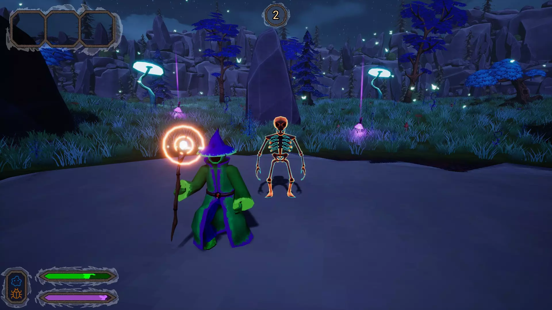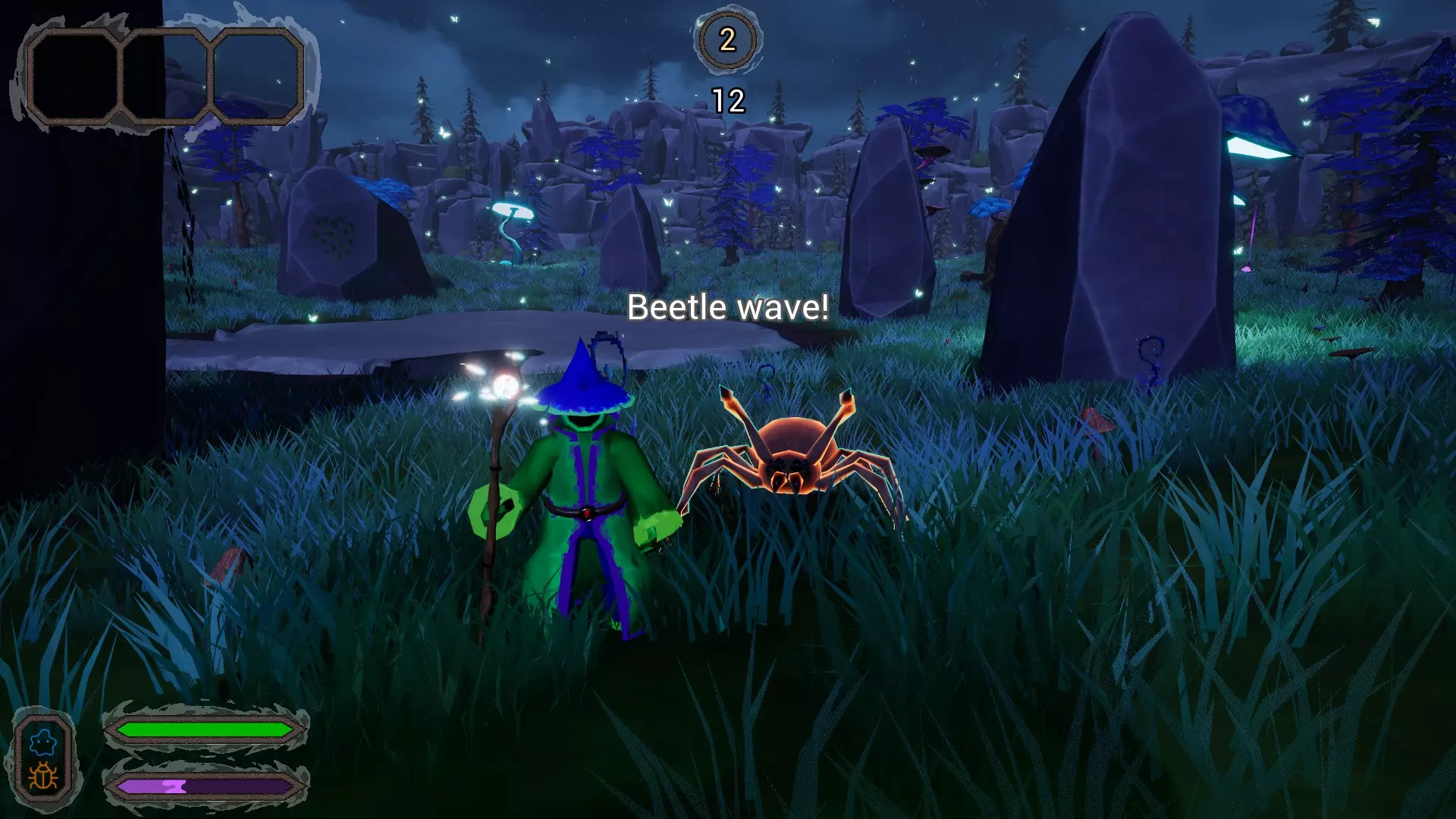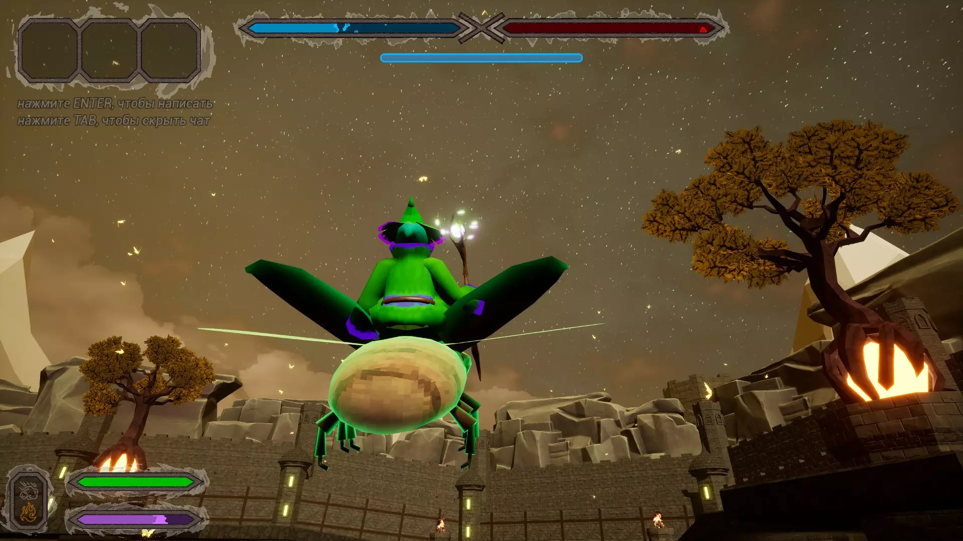 战术 游戏策略建议: 始终保持移动——一个法力值可以召唤一个生物,保持移动能让敌人更难击中你,同时你可以时不时跑到竞技场角落召唤生物。 法力值满时召唤生物,当你法力值满时,最好立即召唤生物,不要等敌人出现——这样你可以在游戏一开始就提高机动性并组建一支助手军队。如果情况很糟就赶紧溜,如果感觉不妙(在游戏里),快被干掉了——就抓起甲虫(或者用传送法术)逃离麻烦,趁你的敌人还没反应过来,用火焰尖刺把他们烧成灰烬! 如果周围没人,但生命值快耗尽了——立刻治疗。游戏中有防护治疗法术,会生成一个腰带,每秒为玩家恢复2.7生命值。