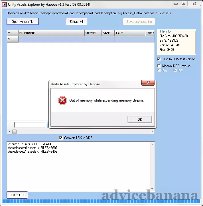 差不多完成了。还剩两条音轨需要处理。像之前一样打开其他.assets文件,使用搜索功能找到并提取以下文件: sharedassets0.assets:pretty killer_fadeIn.ogg sharedassets6.assets:rainbowRoad.ogg 如果我们看到以下错误消息