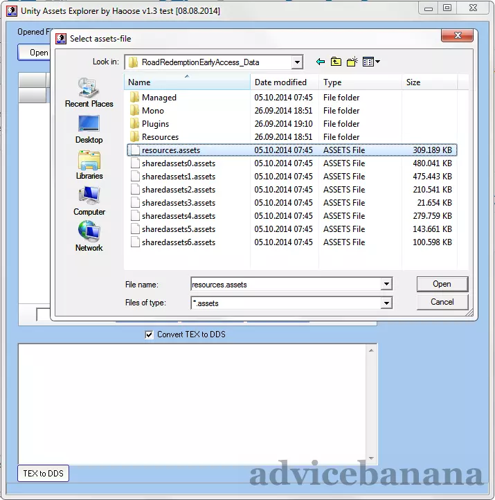 我们点击顶部标有【打开资源文件】的按钮。在打开的窗口中,我们导航至《公路救赎》的安装位置,通常位于C: Program Files (x86) Steam steamapps common RoadRedemption。我们打开子目录RoadRedemptionEarlyAccess_Data,在那里可以看到这些文件。