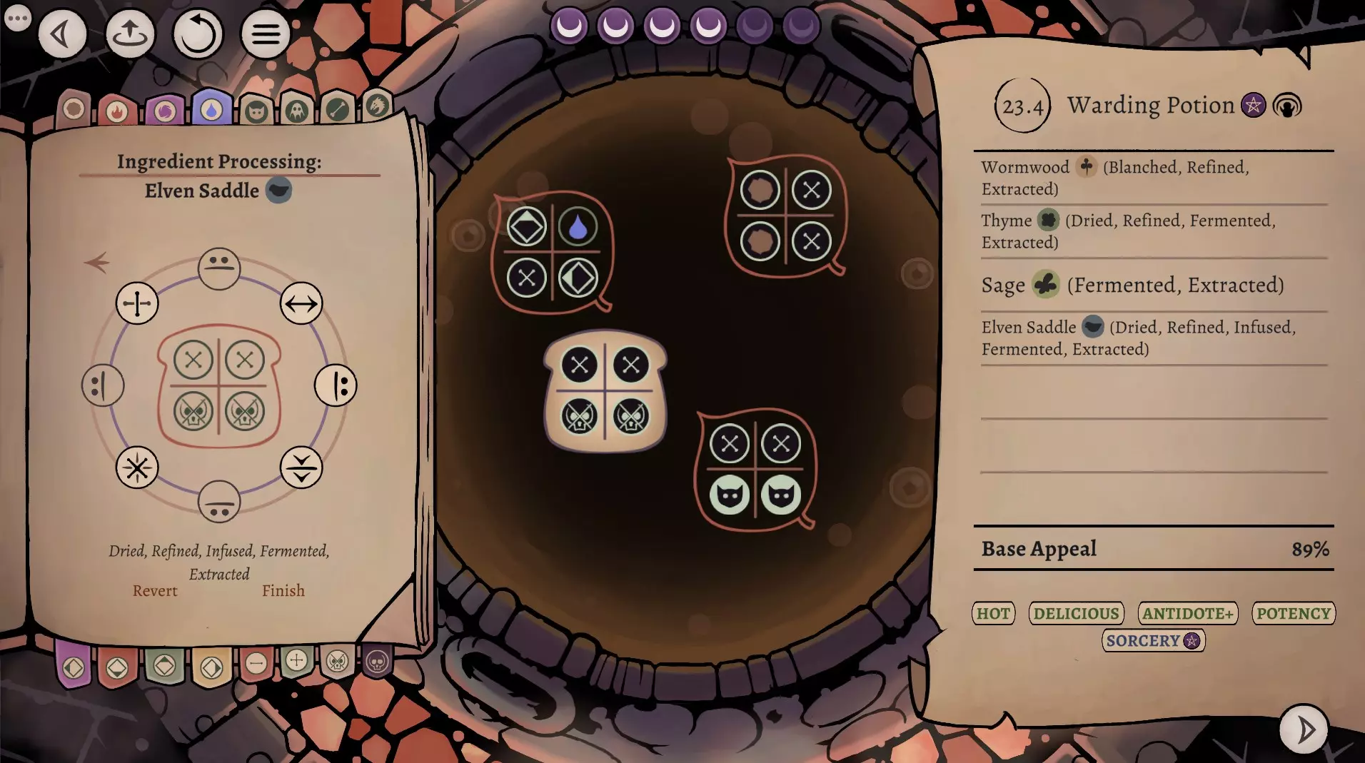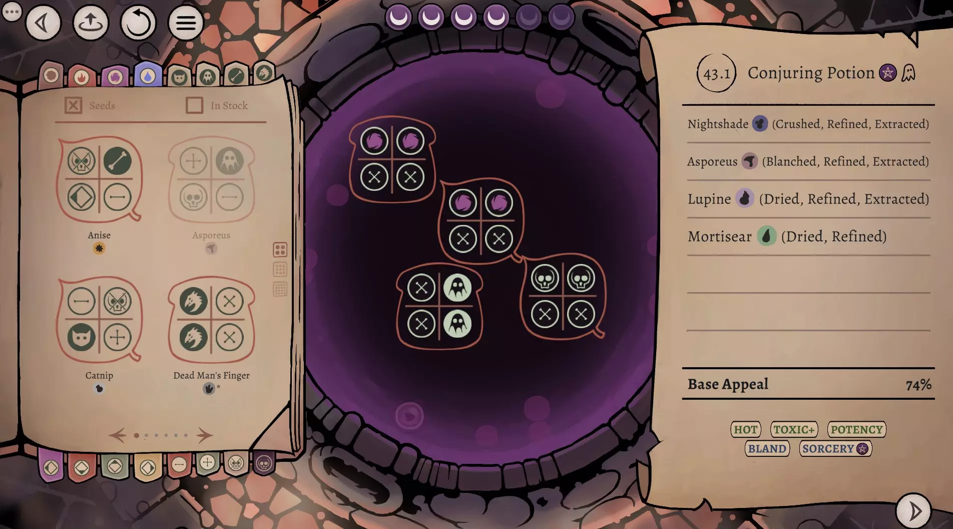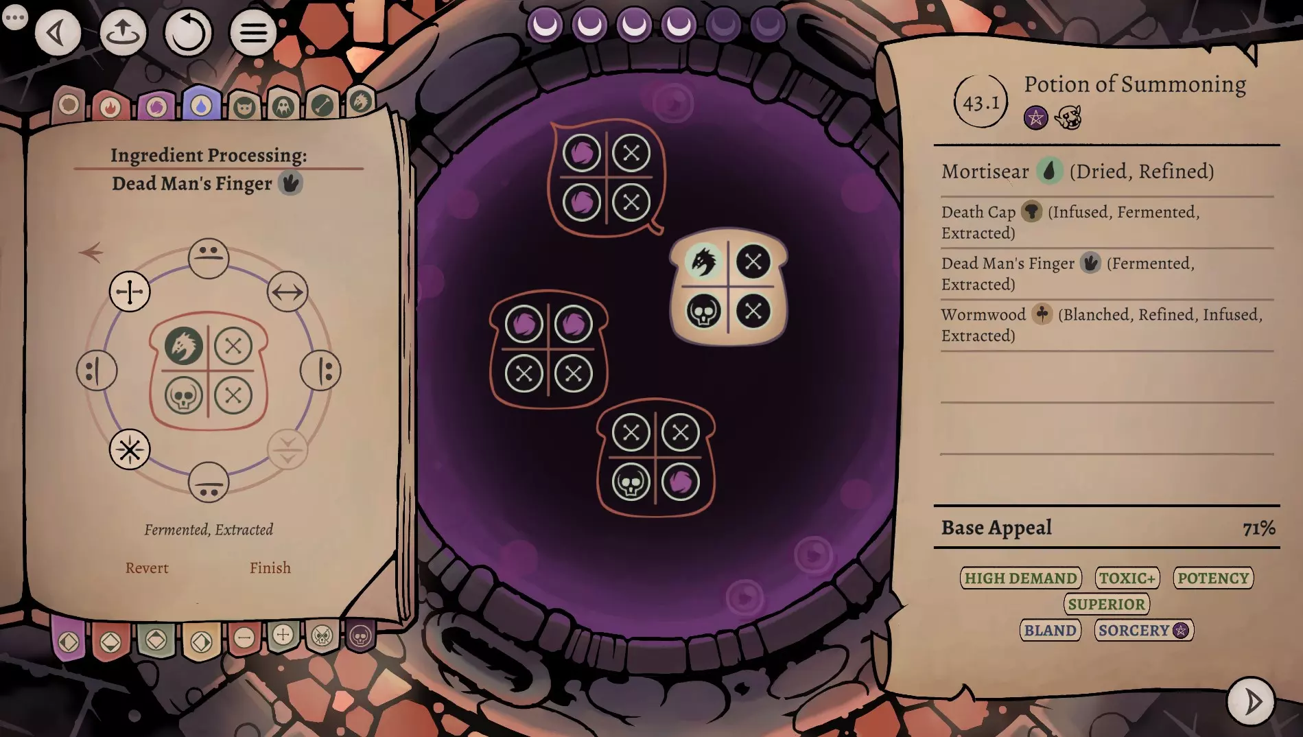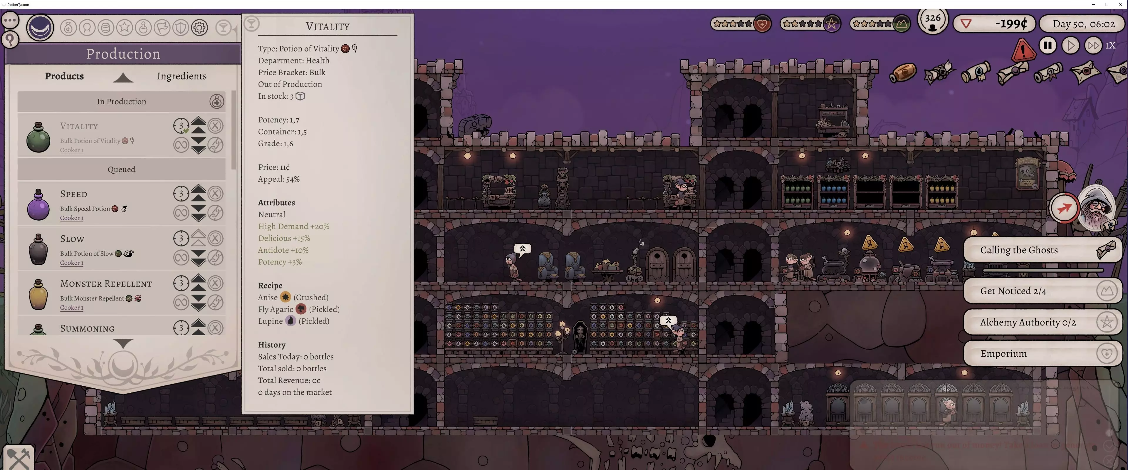 这是《药剂大亨》正式版大师难度的终局药剂配方指南,分享了通关用的16种终极药剂配方,包含后期生命、法术、配置等药剂,所有药剂使用相同瓶盖、瓶子和小饰品来优化利润,还展示了炼金界面及各药剂的原料处理、配方详情。