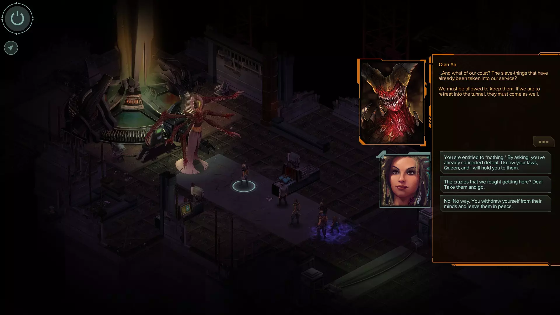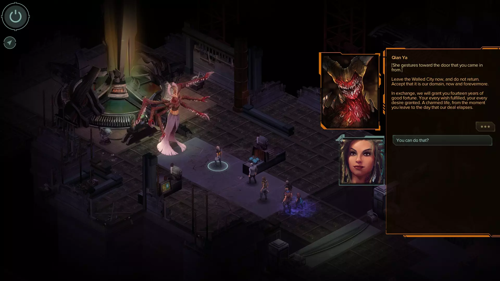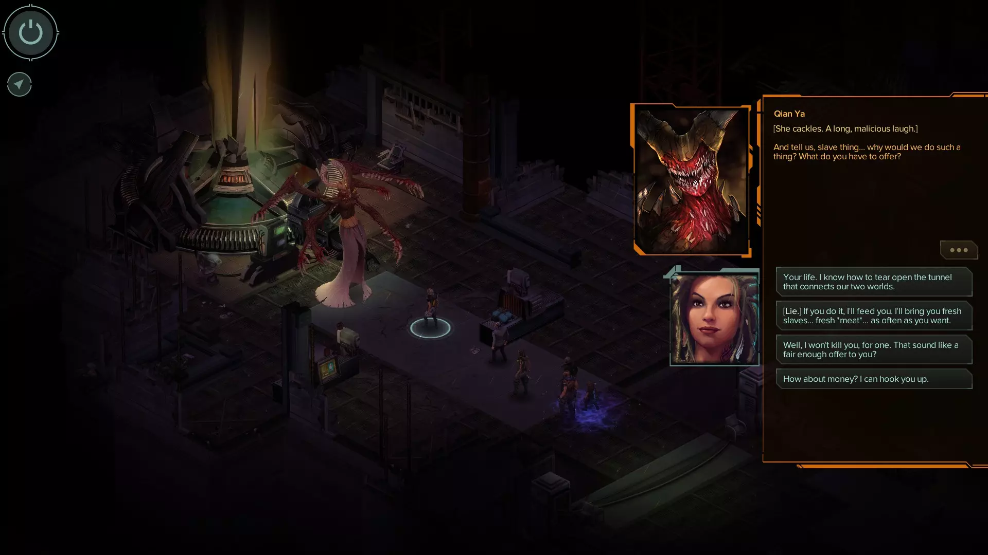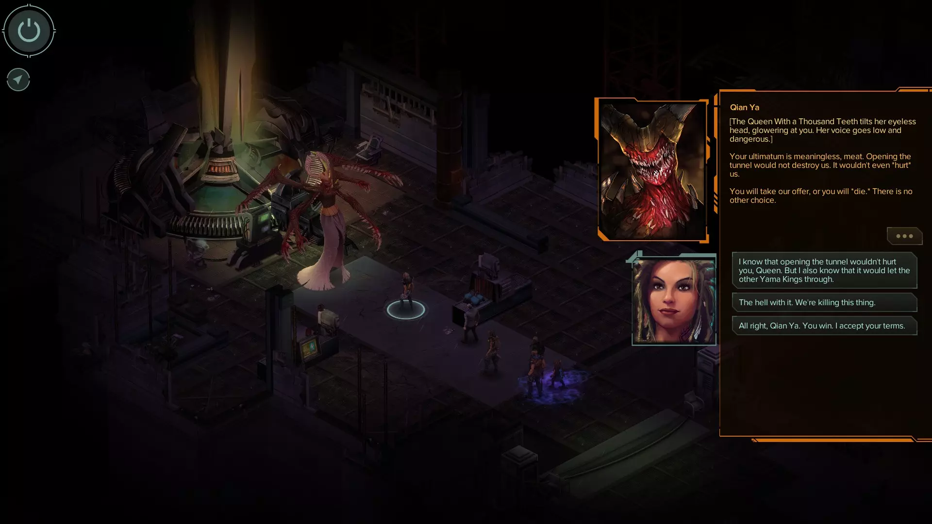 好运结局 最后两个结局最令人困惑,主要是因为没人睡觉。达成这些结局有几个要求。 1. 在去找雷蒙德之前,你必须睡够5次(我记得任务结束后有7到8次睡觉的机会)。最后一次噩梦会让你醒来时感觉休息好了,但少了一颗牙,还会有一个幻象。 2. 完成伊索贝尔的支线故事。和她交谈2到3次后,她会给你支线任务。任务会出现在你的电脑新消息里。建议你一接到任务就去做,因为之后你还需要和她再交谈3次。她需要给你讲那个骗过阎罗王的孩子的故事。 3. 学会雷蒙德用来平息家庭争吵的那句话(你可以在任务结束后和邓肯交谈来学到这句话)。这会帮助雷蒙德摆脱追踪,并且你会了解到可以利用裂隙来扭转对女王的局势。 最后一部分会遇到售卖魔法物品的商人。她叫克莱菲,商店就在飞船旁边。和她交谈几次后,她会给你发送两封邮件。你需要在电脑上打开这些邮件。从中你会得知阎罗王受其契约约束,可以拒绝女王带走她奴隶的请求。 完成所有这些后,继续推进任务(去营救雷蒙德)。你需要再次击败女王两次。第二次战斗后,不要攻击她。告诉她你赢得了面见她的资格。她会提出一个交易,但你要说你有一个反提议。选择第一个可用选项,即让她返回自己的领域并关上身后的门。关于山大王的选项会作为第一个选项出现。选择它。如果你所有步骤都操作正确,她在对话中就无法拒绝你的交易,必须接受。她会独自回到领域。 [更新]我会在下方添加对话截图(基本上每次都可以选择第一个选项,除了“不,但我有个反提议给你”这个选项外)
