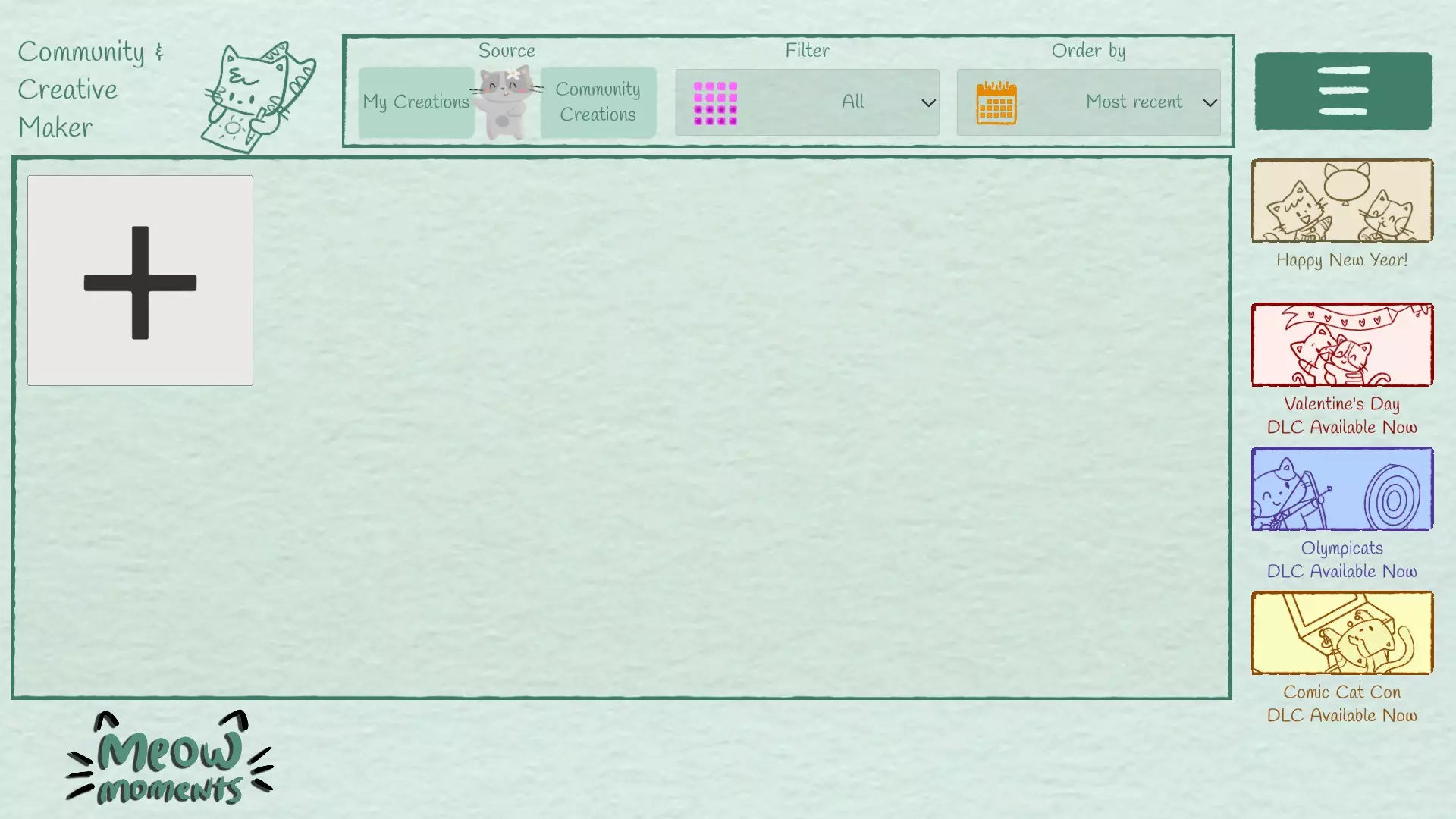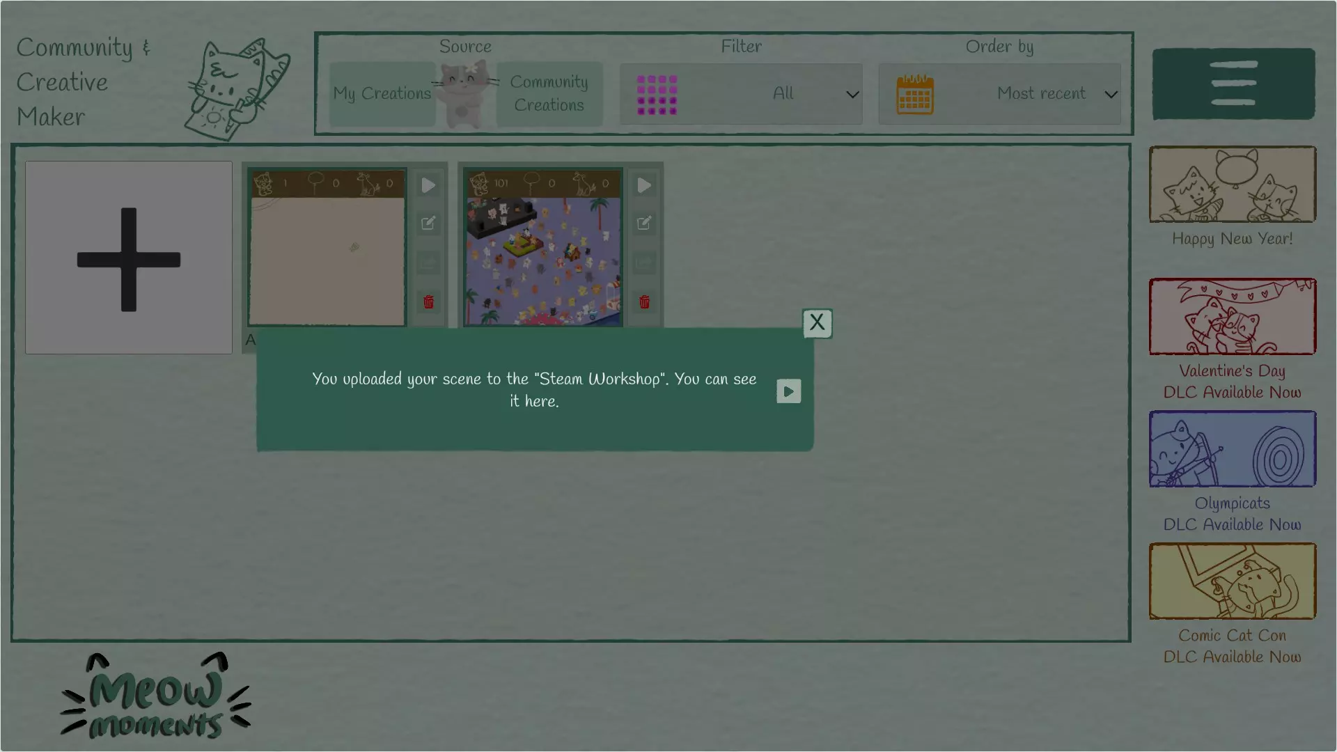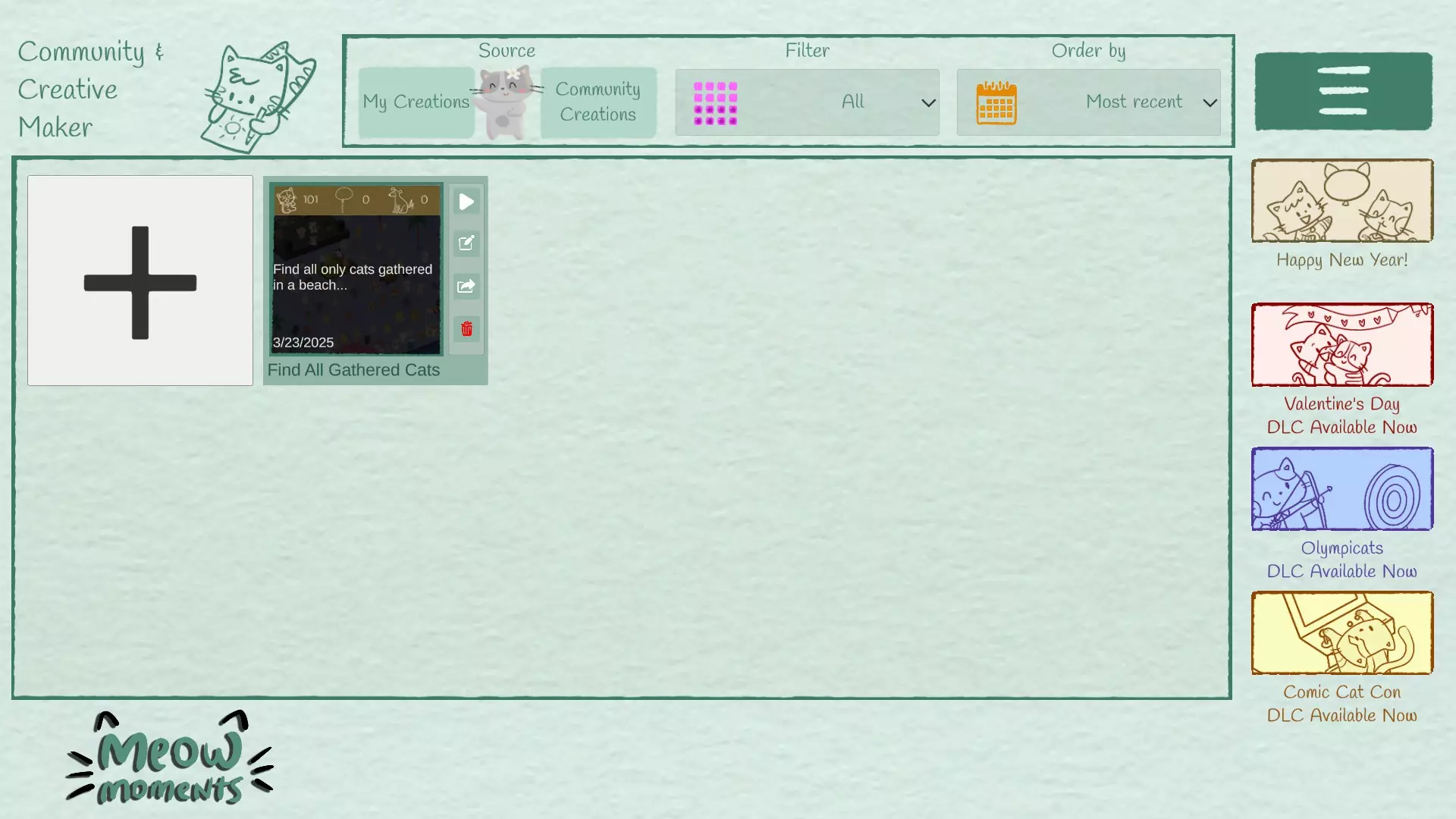 一份创意指南——让制作游戏成为一种回忆的过程,每个迷你游戏都反映出孤独、喜悦以及打造个人专属事物的静谧艺术。 欢迎 本指南专为想在《Meow Moments》的【社区与创意工坊】中制作自己游戏的你而打造。最终,你将拥有自己的首个创意工坊作品。 如何制作自己的游戏 第一步:进入【社区与创意工坊】。