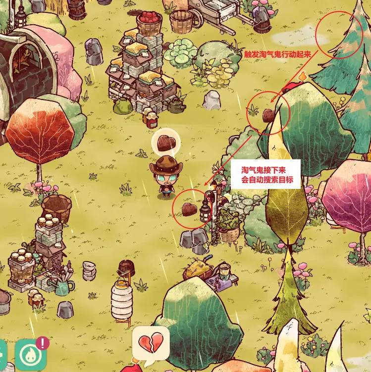 淘气鬼行动起来之后,会自动搜索一个比较大范围之内的目标(大概半个屏幕):