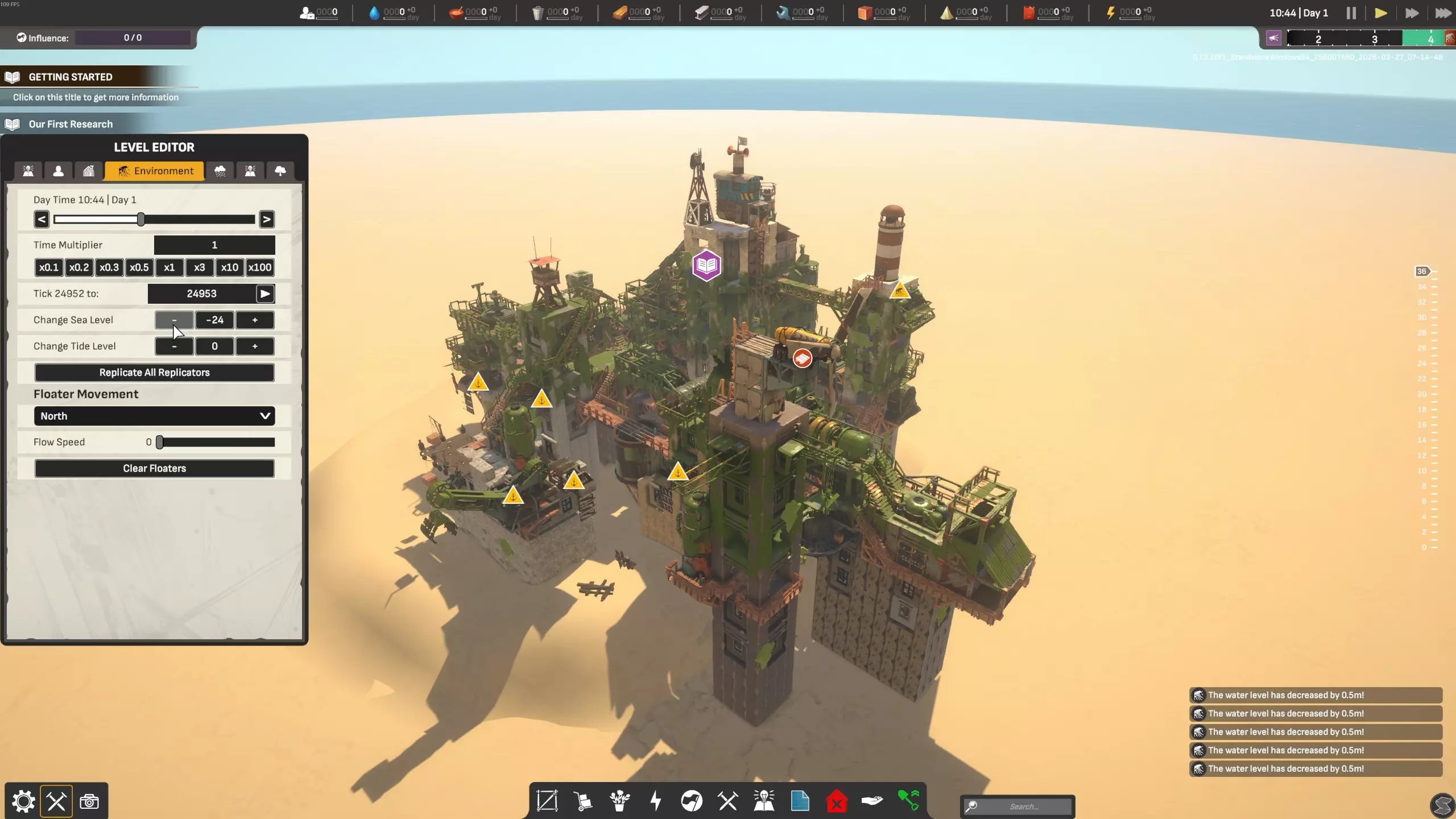 我们还将添加一种方式来定义其是作为沙盒模式还是自定义场景创建的,以便在搜索时能更轻松地按不同类别浏览。你创建的或从创意工坊下载的这些不同场景,将在主菜单的【自定义场景】中可用,这样你就可以探索各种挑战地图,或是纯粹的海洋区块;你可以尽情发挥,也可以体验其他玩家的创意。 创意开发工具 沙盒模式的整体设计与我们开发团队使用的开发工具最为接近,这也是我们在制作《终落之城》时希望采用的工作方式。当然,我们有一些Unity工具,但我们希望在沙盒模式中尽可能提供最先进的工具,让你可以进行实验;这是一个强大的开发工具。如果你觉得我们遗漏了某些内容,请告诉我们,我们会尽力补充。未来我们计划支持模组功能,敬请关注后续更新。你可以建造一座满是摩天大楼的城市,也可以通过抬高或降低水位来重现“全新开始”的场景。