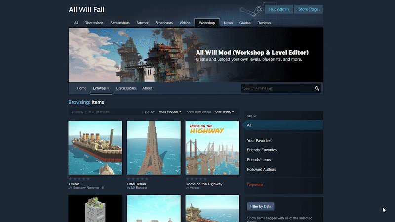 Steam创意工坊整合 你可以将自己创建的关卡和场景导出为本地模组,保存留待日后使用,也可以导出至Steam创意工坊,供其他玩家下载。