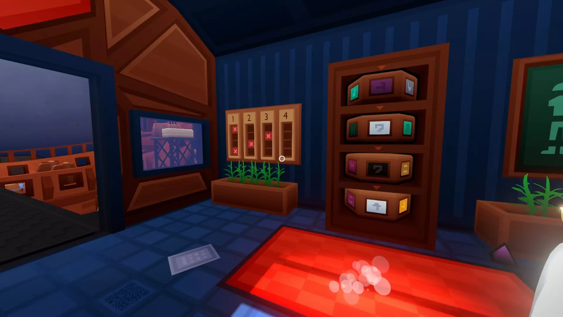 最终代码应该是这样的 如果操作正确,你会听到: ♫嘟噜噜 嘟噜噜 嘟噜♫ ~~~~~~~~~~~~~~~~~~~~~~~~~~~~~~~~~~~~~~~~~~~~~~~ 解开这个谜题的时候,我感觉自己超聪明 希望你也是这样❤️ 祝其他谜题顺利解开! 第六关(办公室) 和你的搭档交流: 你们都看到了什么?都看到书架了吗?是什么颜色,有什么物品? 提示:讨论一下你们房间里的书架可能有哪些不同之处。你们能翻动书本吗?应该翻动哪些书呢?儿童角色解谜方案: (蓝色书架) 第1行 - 翻转第2本书 第2行 - 翻转第1本书 第3行 - 翻转第3本书 成人角色解谜方案: (红色书架) 第1行 - 翻转第1本书 第2行 - 翻转第2和第3本书 第3行 - 无需操作 (白色书架) 第1行 - 无需操作 第2行 - 翻转第1和第2本书 第3行 - 翻转第3本书 7号房间(酒店客房) 该房间包含5个谜题。 谜题1 观察雕像。你们两人是否都有雕像?雕像是什么样子的?它们是否带有符号? 提示:每个玩家都有无法更改的符号,以及可从几个选项中设置的其他符号。讨论关于每个雕像,你们能设置和不能设置的内容。你们能否匹配彼此的符号?谜题2 儿童角色任务:注意带有4位数字的盒子。其中一位数字已设定,其余数字需要找出。你需要搭档告诉你密码。 成人角色任务:待编写 待编写 谜题3 待编写 谜题4 儿童角色任务:四个花瓶上有符号。通过描述符号来告知搭档。 待编写 谜题5 儿童角色任务:大厅里有带符号的图片。向搭档描述你看到的每个符号。 提示:如果图片展示的是一栋建筑,且每一行代表一层楼,那么它有多少层楼?告诉你的搭档数字以及图片的符号。 书写中 完成这个房间的全部五个谜题后,将解锁成就。恭喜!