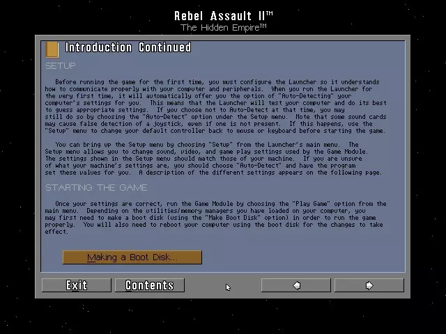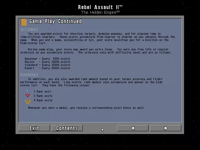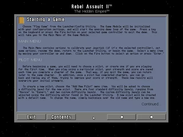 11. ADG 第295集 宣传语:极度开心的表情 年份:1996年 开发商:Disney Interactive (LucasArts) 发行商:Disney Interactive (LucasArts) 类型:单人轨道射击游戏 注意事项:该游戏的PlayStation 1版本更容易找到。有时会包含《星球大战:侠盗中队》第一部。《星球大战:侠盗中队》第二部的试玩版包含第6关,在该关卡中你需要摧毁为TIE幽灵战机服务的采矿设施。DOSBOX 配置 [CPU] cycles = 80,000 [Joystick] AutoFire = True *故事背景* 故事发生在《星球大战:义军突击》第一部以及死星被摧毁之后,菜鸟一号陷入了揭露银河帝国最新计划的事件中。该计划旨在大规模生产一种新型钛战机,这种战机在发动攻击前,无论是肉眼还是雷达都无法探测到,就像《星际迷航6》中猛禽舰的作战方式一样。