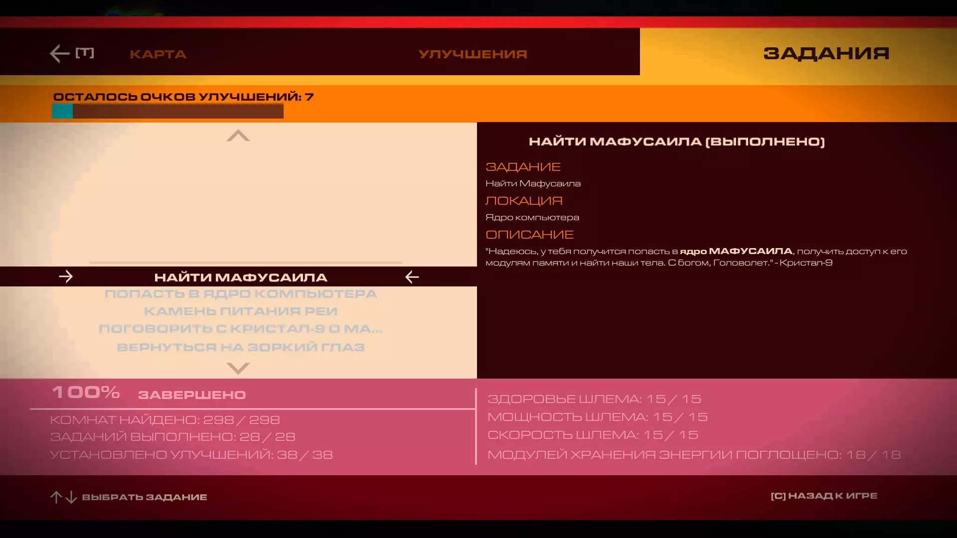 猎颅者 你找到了所有阿尔法、贝塔和伽马终端 阿尔法、贝塔和伽马终端分别提升生命值、能量值和头盔速度。每种类型各有15个,在地图上以黄色点显示。