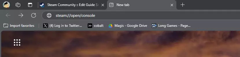 本指南将向你展示如何下载游戏的旧版本并进行游玩。 我会介绍【Glad Giraffe】更新,因为它是游戏简化更新前的最后一个版本。 本方法仅适用于Windows系统。我不清楚在其他平台上如何操作。 你可能需要了解如何在自己的平台上打开Steam控制台。 小提示 本指南是针对Windows版Steam制作的。 我不清楚在其他版本上如何操作。 此外,唯一可能需要根据操作系统进行调整的部分是打开Steam控制台,这在其他系统上肯定有很大不同。 你可以在互联网上查找相关方法。 另外,耐心是一种美德。请记住,你将直接从Steam服务器下载旧版本。 启用Steam控制台: 要从游戏下载之前的更新,我们首先需要在你的Steam客户端上启用控制台。 有两种方法可以做到: 第一种方法在你操作后很可能会立即生效。 按下Windows徽标键+R,然后在文本框中输入:"steam://nav/console" 运行该命令将在你的Steam上打开【控制台】选项卡(即使Steam已经在运行,也无需关闭它)。