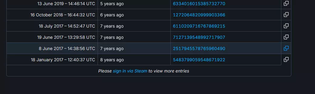 清单行末尾的蓝色方框,点击它会将从Steam控制台下载该特定版本游戏的链接复制到剪贴板。 要下载它,你需要打开Steam,进入【控制台】,然后将复制的文本粘贴到其文本框中。 粘贴的文本应如下所示:【download_depot <数字> <更多数字> <更多数字>】 不会有进度条或其他提示,但下载完成时会在控制台显示,同时会显示更新的下载位置,所以请等待一段时间,可以去看个视频之类的。 特定版本下载列表 其中包含你可以下载的特定游戏更新列表。 输入命令并按回车键后,等待控制台显示确认消息。确认消息也会显示游戏的下载目录。